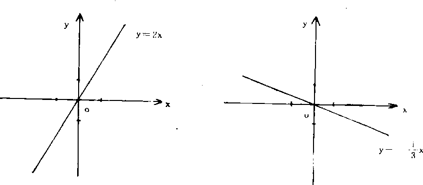 正比例函数的图象是一条过坐标原点o的直线。例如,正比例函数y=2x,y=-1/3x,都是正比例函数。它们在直角坐标系里的图象如下:
