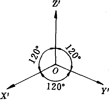 轴向变形系数p,q,r都相等的正投影图.规定正等测的轴向变形系数为p:q:r=1:1:1,轴间角都是120°(如图).