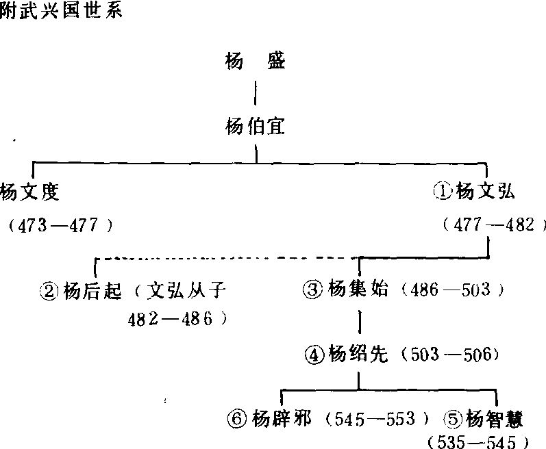 释义 | 武兴国 武兴国南北朝时期氐族地方政权。武都国灭亡后,杨文度弟杨文弘退守武兴(今陕西略阳),自称武兴王。宋升明二年(478),顺帝封杨文弘为北秦州剌史、武都王。史称武兴国。亦受魏封。天监四年(505 ),魏军攻汉中,武兴王杨绍先恐不利于己,帅氐众叛魏称帝。506年,魏军攻克武兴,俘获杨绍先,改武兴为东益州。北魏孝昌(525—527)中,杨绍先乘北方战乱逃回武兴,仍称武兴王。西魏元钦二年(553),绍先子杨辟邪反魏,魏将叱罗协攻占武兴,杀杨辟邪。武兴国亡。凡6主75年。 ☚ 武都国 阴平国 ☛ 武兴国 武兴国清水氐族建立的政权。公元477年北魏出兵攻武都国,武都公杨文度被杀,武都国亡。杨文度之弟杨文弘逃至武兴今陕西略阳, 于公元478年自立为武都王,史称其政权为武兴国。这个政权的疆域只包括今康县、武都南部、文县等地,延续存在了75年。 ☚ 武都国 阴平国 ☛ 武兴国 武兴国清水氐族建立的政权。公元477年北魏出兵攻武都国,武都公杨文度被杀,武都国亡。杨文度之弟杨文弘逃至武兴今陕西略阳, 于公元478年自立为武都王,史称其政权为武兴国。这个政权的疆域只包括今康县、武都南部、文县等地,延续存在了75年。 ☚ 武都国 阴平国 ☛ 武兴国南北朝时期略阳清水氐人杨氏所建政权。南朝宋昇明元年(477)底,※杨文弘在兄※杨文度被杀后,退屯武兴(今陕西略阳县),自立为武兴王,史称其建立之政权为武兴国。据有武兴、葭芦、白水等地。后受北魏及宋封为武都王,南北两事之。一说武兴国始于元徽元年(473)杨文度自称武兴王。南齐建元四年(482),杨文弘卒,从兄子杨后起继位,率军击败欲自立为王之文弘子集始。永明四年(486),杨集始继为武都王。其子杨绍先曾被北魏封为武兴王。梁天监四年(505),为其二叔杨集起、集义拥为帝,叛魏,次年北魏攻克武兴,※杨绍先被执送洛阳,武兴国一度亡。北魏孝昌(525—527)中,杨绍先从洛阳逃回武兴,复自称王。大同元年(535)卒,子智慧立(《周书·氐传》认为绍先卒,辟邪立,未言智慧继位之事),西魏废帝二年(553),杨辟邪为魏将击败,弃武兴城而走,被杀。武兴国复亡。历5主(或6主),凡77年。若从杨文度称武兴王始,则历6主(或7主),凡81年。 |