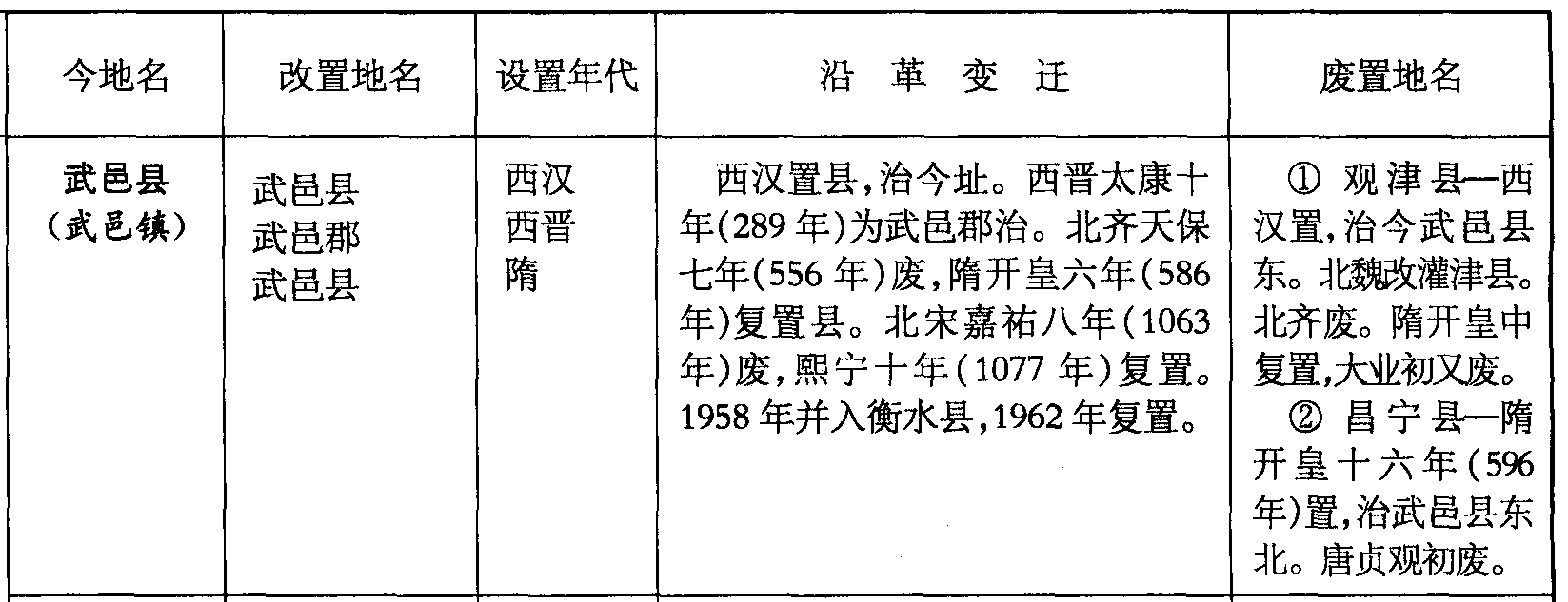 武邑县(武邑镇)武邑县武邑郡武邑县西汉西晋隋西汉置县,治今址。西晋太康十年(289年)为武邑郡治。北齐天保七年(556年)废,隋开皇六年(586年)复置县。北宋嘉祐八年(1063年)废,熙宁十年(1077年)复置。1958年并入衡水县,1962年复置。❶ 观津县—西汉置,治今武邑县东。北魏改灌津县。北齐废。隋开皇中复置,大业初又废。❷ 昌宁县—隋开皇十六年(596年)置,治武邑县东北。唐贞观初废。