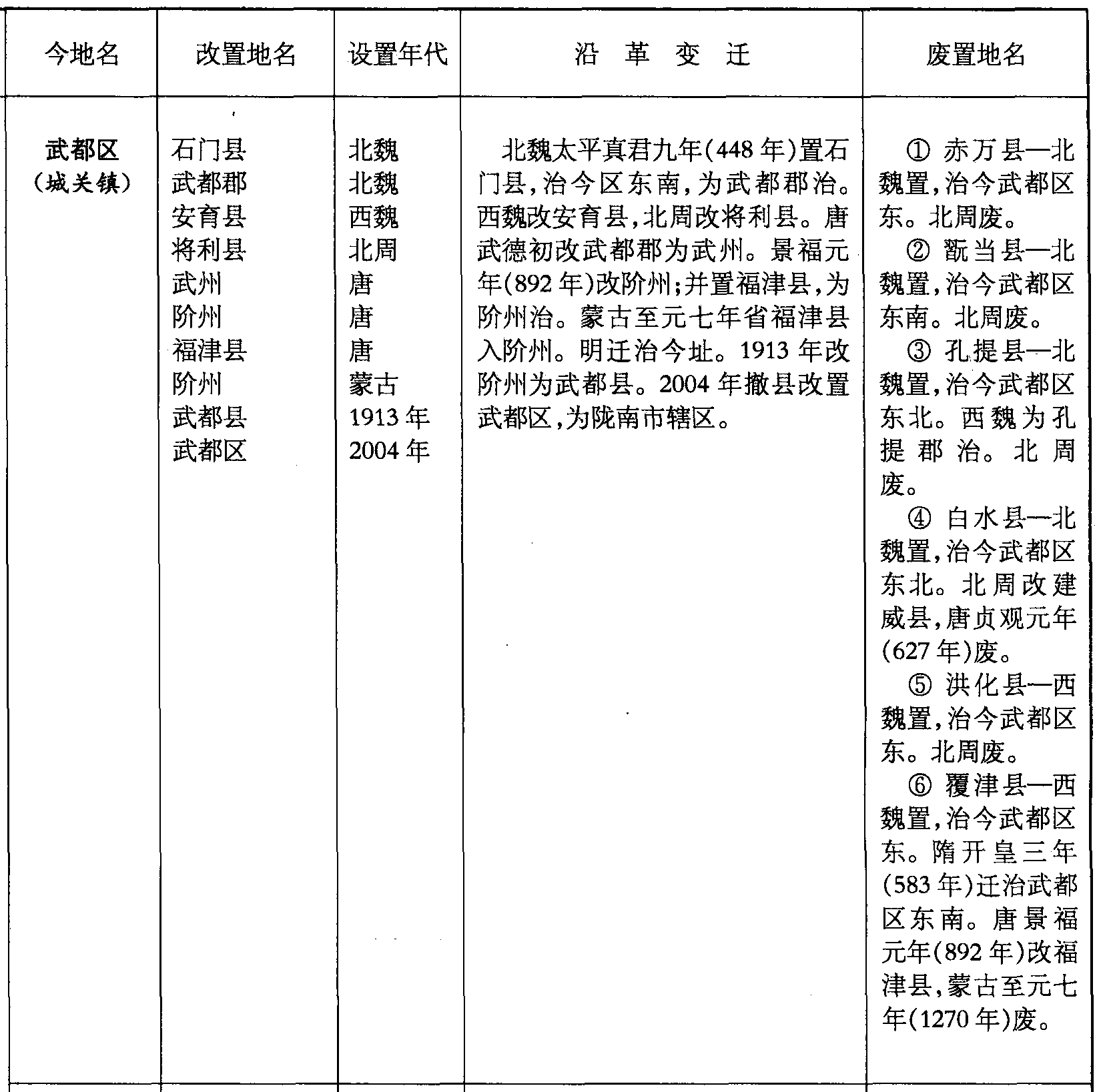 ❷ 翫当县—北魏置,治今武都区东南。北周废。
