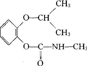 释义 | 残杀威propoxur又称Baygon,IMPC。化学名称:2-(1-甲基乙氧基)苯基氨基甲酸酯。化学结构式如下。纯品为白色晶体,熔点91℃。工业品熔点84~87℃,120℃时蒸气压为133.322×10-2 Pa,20℃时为<0.133 mPa,20℃时水中溶解度为1 750 mg/L,25℃时溶解度为0.1%。能溶于乙醇、丙酮、甲乙酮、环己酮、氯仿中。大鼠(♂)口服LD50为95 mg/kg,(♀)为104 mg/kg,小鼠(♂)口服LD50为100~109 mg/kg,经皮LD50大鼠(♂)为800~1000 mg/kg。主要用于防治室内卫生害虫、牲畜体外寄生虫,如蚊、蝇、蟑螂、蚂蚁、蟋蟀、蚤、虱、蜘蛛等,还可以防治果树、蔬菜、农作物的蚜虫、粉虱等。 |