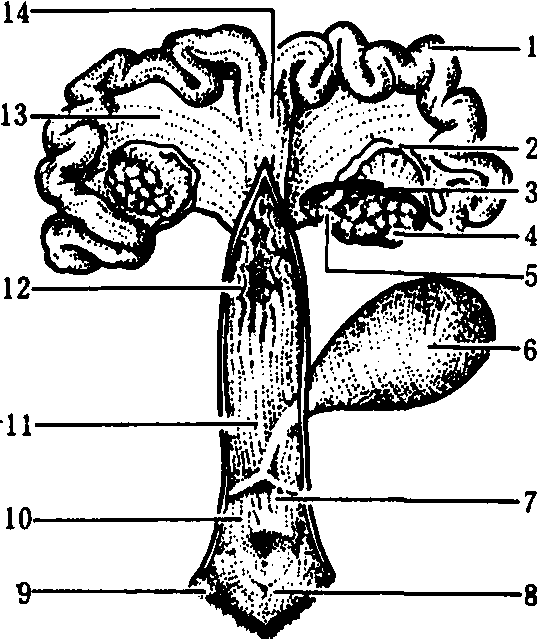 释义 | 母猪阉割术spaying in pigs摘除母猪卵巢以终止其繁殖能力的手术。为中国民间畜禽阉割术的主要内容之一。首见于《肘后备急方》。关于该术的具体描述,最早见于明代周祈《名义考》:“然幽闭若去牝猪子肠。”“子肠”又名“儿肠”,是子宫角的俗称。中国传统的阉母猪是把卵巢和子宫一并切除,故称“去子肠”。清代张宗发在《三农纪》中确切提出了母猪阉割是除去卵巢。 图1 母猪生殖器官 输卵管 为一条弯曲的细管. 呈淡粉红色, 一端与子宫角相通, 是卵巢排出卵子到子宫的通道。 图2 母猪生殖系统(侧面) 子宫 包括子宫角、子宫体和子宫颈三部分。子宫颈较长, 和外面的阴道相通。母猪的子宫体较短(3~5厘米)。子宫体是子宫颈后面的膨大部分。子宫角则是从子宫体分出来的两个管道, 后面和输卵管相接。母猪的子宫角特别长。是胎儿生长发育的地方。其前部位于骨盆腹面入口的两侧稍前方, 相当于髋关节稍后方的位置。因此, 髋关节就成为进行小挑花阉割术时确定位置的主要标志。子宫角为扁圆形, 管壁较厚,比肠细,幼猪为灰白色。在进行小挑花阉割术时, 最先冒出的白色小细管,即为子宫角。阉割幼猪时,可将其全部摘除。 阴道 是母猪交配器官,也是胎儿出生的产道。位于骨盆腔内, 前面与外界相通,后面和子宫颈相连接。可分为大挑花阉割术和小挑花阉割术。 |