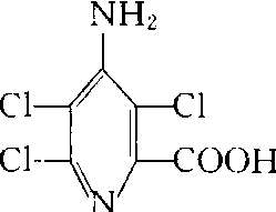释义 | 毒莠定picloram有机杂环类内吸、选择性除草剂。化学名称:4-氨基-3,5,6 -三氯吡啶羧酸。化学结构式如下。纯品为白色粉末,带有氯的气味,熔化前215℃分解。35℃时蒸气压为821.26×10-7 Pa。微溶于水及多数有机溶剂,其钾盐易溶于水。能迅速被叶和根吸收,并传导积累于生长点。适于禾本科和十字花科作物防除一年生或多年生阔叶杂草。对人、畜低毒,大鼠急性口服LD50为8 200 mg/kg,兔急性经皮LD50>4 000 mg/kg。对鱼类低毒。 毒莠定亦称“皮枯烂”。学名为4-胺基3,5,6-三氯吡啶甲酸。纯品为白色晶体的除草剂。 |