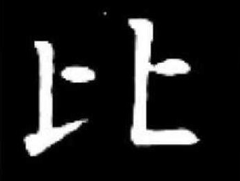 比bǐ 会意字,与“北”字相反,甲骨文本义是两个人相挨着,如比翼、比肩,作意符生成的字有皆、昆等。作声符生成的字有: bi 阴平:𫕅(钗子) 上声:妣(考妣) 秕(不饱满的谷粒) 去声:毕(毕业) 筚(筚路蓝缕) 跸(驻跸) 毖(惩前毖后) 毙(多行不义必自毙) 陛(宫殿的台阶) 庇(庇护) 蓖(蓖麻) 篦(梳头的用具) 舭(古船名) pi 阴平:批(批语) 纰(纰漏) 砒(砒霜) 阳平:枇(枇杷) 毗(毗邻) 蚍(蚍蜉) 琵(琵琶) 上声:仳、吡 去声:屁、媲(媲美)相关链接 “匕”,读bǐ,“匕首”。作为“比”字的一半,其义为人,在甲骨文里是一个倒置的人,“顷”即取此义,“尼”亦然。在甲骨文与金文里它又像一把长柄的勺子,古人用来取食,《说文》:“匕亦所以取饭,一名柶。”作意符生成的字如“匙”。
