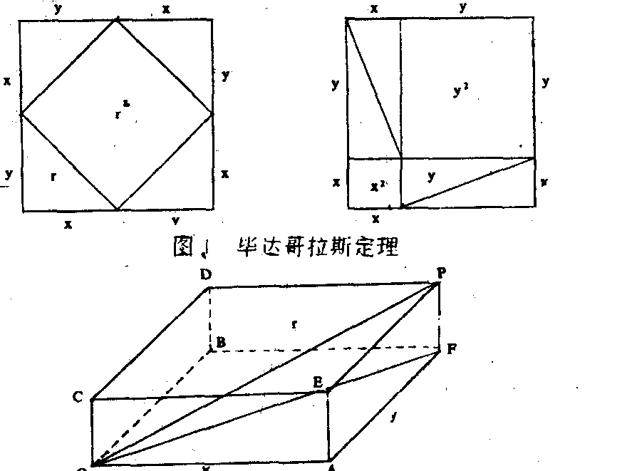 释义 | 毕达哥拉斯定理 毕达哥拉斯定理bidagelasi dingli参见“勾股定理”. ☚ 勾股定理 勾股定理的逆定理 ☛ 毕达哥拉斯定理 毕达哥拉斯定理这个定理说明,在任何直角三角形中,斜边上的正方形面积等于另两边上的正方形面积之和:r2= x2+ y2,欧氏平面几何中这个极为重要的定理,是以公元前六世纪希腊哲学家和数学家毕达哥拉斯命名的,它已有100余种证明方法,其中一个证明是由比较图1中正方形的面积而得到的。 ☚ 概率论 希尔伯特问题 ☛ |