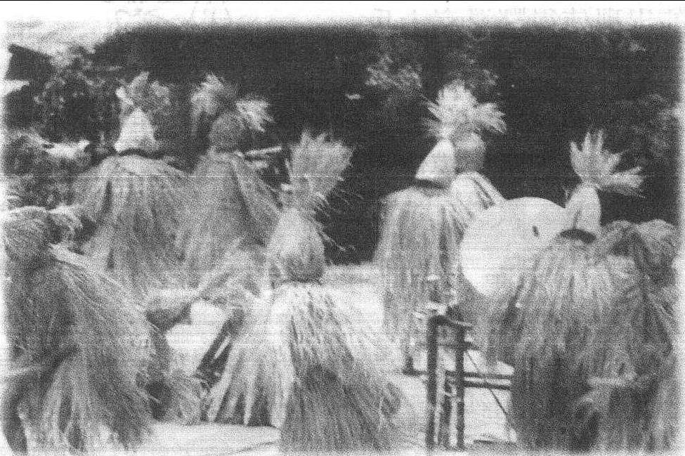 土家语称“谷斯拔佩”,意为古代毛人,是流传在湖南湘西土家族聚居区的一种古老的舞蹈。舞者均为男子,头戴稻草编扎的草帽,顶上竖立五根草辫,身穿草衣草裙,赤足,手握一根一人高的(树杆称齐眉棍)作道具,完全是原始人的装束。舞蹈动作有表现狩猎的“理足迹”、“察看”、“举棒追兽”、“围猎”、“追打”、“搏斗”、“抬野兽”等;有模拟动物形态的“兔儿跳”“磨鹰斑鸡”等;有展示生活内容的“照太阳”、“看月亮”、“抖狗蚤”、“打粑粑”等;还有比较罕见的。反映原始人对男性生殖器崇拜的“示雄”、“送胯”、“转臀部”等。表演拙朴,自娱性强。