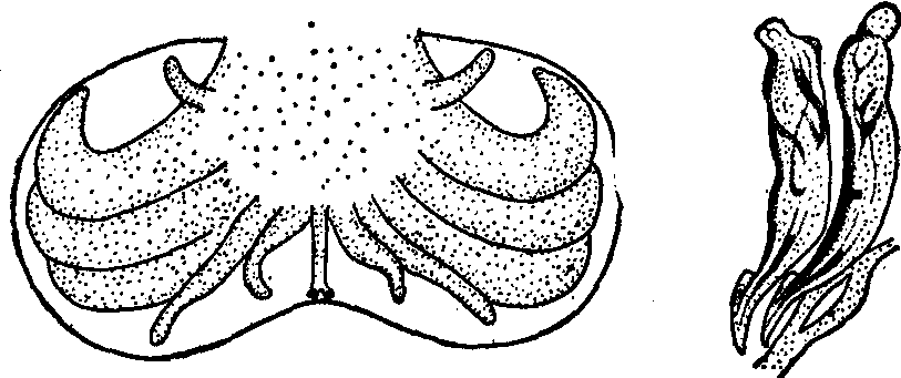 释义 | 毛圆线虫与毛圆线虫病 毛圆线虫与毛圆线虫病毛圆线虫属的种类较多,均为细小的线虫,其长度很少超过7mm,无口囊与口齿。雄虫交合繖左右对称,背叶小。 寄生于草食动物, 𫝯齿动物、鸟和人。 动物感染很普遍,人体感染多见于亚洲和苏联。散发的感染发生在饲养牛、羊的国家,包括中东、印度、东南亚部分地区和远东。已证实寄生于人体的毛圆线虫有7种: 即东方毛圆线虫 (Trichostrongylus orientalis Jimbo,1913)、短毛圆线虫(T. brevis Otsuru,1962)、蛇形毛圆线虫(T. colubriformis Giles,1892)、突尾毛圆线虫(T. probolurus Railliet & Henry,1896)、艾氏毛圆线虫 [T. axei (Cobbold, 1879) M⍥nnig, 1934]、 透明毛圆线虫 (T. vitrinus Looss,1905)、斯氏毛圆线虫 (T. skrjabini Kalantarjan,1928)。前2种主要寄生于人,后5种主要寄生于动物,偶而感染人体。我国已发现东方毛圆线虫、蛇形毛圆线虫、突尾毛圆线虫和艾氏毛圆线虫,但仅东方毛圆线虫和蛇形毛圆线虫有人体感染记录。 东方毛圆线虫 蛇形毛圆线虫 生活史似东方毛圆线虫。幼虫经口进入宿主,在肠内发育为成虫。成虫寄生于多种动物的小肠或皱胃。我国各地的绵羊、山羊感染普遍,其它如黄牛、黄羊、驼鹿、家兔、双峰驼、麅和赤腹松鼠亦曾发现感染。人体感染见于四川潼南、铜梁、合川等地。 诊断、治疗、预防均似东方毛圆线虫病。 突尾毛圆线虫病 突尾毛圆线虫虫体纤细。雄虫长4.5~5.5mm,交合繖腹侧肋最宽,后侧肋与背侧肋均短,彼此靠近。交合刺长126~134μm,较粗,色深,扭曲状。交合刺引带长75~80μm。雌虫长4.5~6mm,尾长40~50μm。虫卵大小70~80×43~46μm。成虫寄生于多种动物体内,人体感染见于北非及苏联的亚美尼亚和西伯利亚等地。在我国寄生于绵羊、山羊、瞪羚和双峰驼的皱胃、小肠和胰脏,盘羊的小肠和麅的皱胃,无人体感染的报告。 致病及防治均同蛇形毛圆线虫。 艾氏毛圆线虫病 艾氏毛圆线虫虫体纤细,雄虫长3.5~4.5mm,两根交合刺不等长,左交合刺93~99μm,右交合刺112~121μm,交合刺中央内侧有一分枝,右交合刺分枝更明显。交合刺引带长56~60μm。雌虫长4.6~5.5mm,阴门距尾端0.8~1.072mm,尾长40~50μm。虫卵大小70~80×43~46μm。成虫寄生于多种动物体内。人体感染见于苏联的亚美尼亚和西伯利亚以及毛里求斯。在我国寄生于绵羊、山羊、黄牛、马和驴的皱胃、胃和小肠,未发现人体感染。 ☚ 粪类圆线虫与类圆线虫病 吸吮线虫与吸吮线虫病 ☛ |