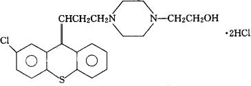 C22H25ClN2OS·2HCl=473.89 CAS-633-49-0 CAS-982-24-1(clopenthixol) 4-[3-(2-氯-9H-噻吨-9-亚基)丙基]哌嗪乙醇二盐酸盐。 4-[3-(2-Chloro-9H-thioxanthen-9-ylidene)propyl]-1-piperazineethanol dihydrochloride. 2-氯-9-[3-[4-(2-羟乙基)哌嗪基]亚丙基]噻吨二盐酸盐。 2-Chloro-9-[3-[4-(2-hydroxyethyl)piperazinyl]propylidene]thiaxanthenedi hydrochloride. 安定药。 二盐酸氯噻吨。 Clopenthixol Dihydrochloride,Ay 62021,N-746,Ciatyl,Clopixol,Sordenac,Sordinol. MI.
