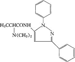 释义 | 二苯米唑 C20H22N4O=334.42 CAS-20170-20-1 2-(二甲氨基)-N-(1,3-二苯基吡唑-5-基)丙酰胺。 2-(Dimethylamino)-N-(1,3-diphenylpyrazol-5-yl) propionamide. 解热镇痛药。 Difenamizole. INN,USAN. |