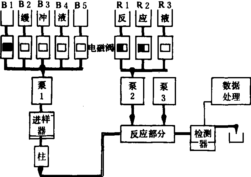 氨基酸自动分析仪原理B1,B2,B3,B4,B5为各种缓冲液R1,R2,R3为各种反应液