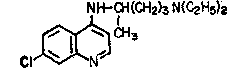 | 释义 | 氯喹合成的抗疟药。T1/2约48 h。控制疟疾发作:第1次口服1 g,过8 h再服0.5 g,第2、3日各服0.5 g,总疗程3 d共2.5 g。预防疟疾发作:口服,成人每周0.5 g,儿童每周8 mg/kg,直至离开疟区6~8周为止。片剂:每片250 mg(含碱基150 mg)。 氯喹chloroquinum, aralen系一种抗疟疾药物。磷酸氯喹为白色结晶粉末,味苦,易溶于水。本品主要对疟原虫红内期起作用,能有效地控制疟疾症状发作。对红外期无作用,不能控制其复发(恶性疟因无红外期,可被根治);不能作预防用,也不能阻断传播。本品还可治疗肝阿米巴病、肺吸虫病、华支睾吸虫病、结缔组织病、光敏性疾病等。治疗疟疾,先服1g,8小时后再服0.5g,第2、3日各服0.5g,全疗程3日;抑制性预防疟疾,每周服1次;每次0.5g;抗阿米巴肝脓肿,每日2次,1次0.5g,连用12~19日;治疗类风湿性关节炎、盘状狼疮,开始1日1~2次,1次0.25g,经2~3周后,如症状得到控制,改为1日2~3次,1次0.125g,长期维持;对系统性红斑狼疮,用激素缓解症状后,改用氯喹,可减少皮质激素用量。用本品可引起消化道症状、皮肤过敏反应、神经精神症状、白细胞减少、子宫收缩、心律失常、过敏反应、耐药性等。 氯喹人工合成的4-氨基喹啉衍生物。主要控制症状的抗疟药。磷酸盐为白色结晶,溶于水,味苦。能防治各种疟疾的急性发作。控制疟疾症状。以效力强、作用快、作用持久为特点。不良反应较少。此外,对肠道外阿米巴病、肝脓疡、类风湿性关节炎、红斑性狼疮、肾病综合征等都有一定治疗作用。 氯喹 氯喹