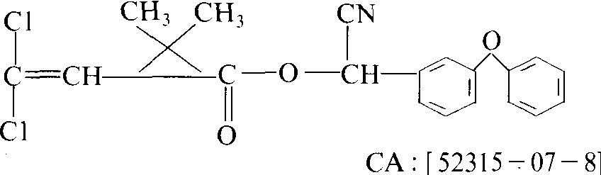 释义 | 氯氰菊酯cypermethrin对光、热稳定,生物活性较高,含氰基的合成拟除虫菊酯杀虫剂,商品名有安绿宝、灭百可、赛波凯、兴棉宝、Arrivo、Ripcord、Cyperkill、Cymbush等。有八个光学异构体。化学结构式: 性能 纯异构体为无色结晶,原药为各异构体的混合物,浅黄色至棕色粘性半固体,熔点60~80℃,密度d201.24,纯品20℃时蒸气压为 1.9×10-7帕,闪点80℃,原药中约含有60%反式异构体和40%顺式异构体。对光、热稳定,200℃以下稳定,弱酸性和中性介质中较稳定,碱性介质中易分解,在正常条件下贮存稳定。难溶于水,易溶于乙醇、丙酮、二氯甲烷、氯仿、环己酮、己烷、二甲苯等有机溶剂。对高等动物毒性中等,急性经口毒性取决于试验时药剂的载体、有效成分顺反比率、试验动物种类、性别、年龄等,原药对大鼠急性经口LD50为251~4123毫克/千克,对兔急性经皮LD50大于2400毫克/千克,对大鼠急性经皮LD50为1600毫克/千克,对试验动物皮肤、眼睛有轻度刺激作用。在试验剂量内对试验动物未发现致畸、致突变和致癌作用。对人体每日允许摄入量(ADI)为0.05毫克/千克。对鱼类等水生生物、蜜蜂、家蚕、蚯蚓高毒,对鸟类低毒。杀虫活性高,属神经毒剂,具有触杀和胃毒作用,对某些害虫的卵也有杀伤作用,无内吸传导和熏蒸作用。药效迅速,有良好的击倒作用,正确使用对作物安全。杀虫谱广,对鳞翅目、直翅目、等翅目、缨翅目、半翅目、鞘翅目、双翅目等多种农业害虫有效,对螨类和盲蝽效果差。 应用 加工成乳油、超低容量液剂、可湿性粉剂等剂型使用。防治农业害虫主要采用乳油,用于棉花、蔬菜、果树、烟草、茶树、大豆、花卉等作物,防治棉铃虫、棉红铃虫、蚜虫、菜青虫、桃小食心虫、柑桔潜叶蛾、茶尺蠖、茶毛虫、丽绿刺蛾、大豆食心虫、花卉蚜虫等。喷雾要均匀,对钻蛀性害虫应在幼虫蛀入作物前施药,残效期 一般为7~14天。防治卫生害虫室外用乳油,在害虫活动和栖息场所进行喷雾处理。室内用可湿性粉剂,在建筑物表面、害虫活动和栖息场所表面或缝隙作滞留喷雾,防治蚊、蝇、蜚蠊、臭虫等。 英国壳牌化学有限公司、美国FMC公司等还开发了生物活性更高的顺式氯氰菊酯(alphacyperme-thrin,CA:[67375-30-8]),商品名称有高效灭百可、高效安绿宝、奋斗呐、Fastac、Bestox、Fendona等,其生物活性比一般氯氰菊酯高2~3倍。 氯氰菊酯cypermethrin又称Ripcord、Cymbush、NRDC149。化学名称:(R.S)-d-氰苯-3-苯氧基苄基(R.S)-顺、反-3-(2,2-二氯乙烯基)-2,2-二甲基环丙烷羧酸酯。化学结构式如下。工业品为黄棕色,黏稠状液体或固体,纯品无色结晶,含有8个光学异构体。溶点60~80℃,易溶于大多数有机溶剂,水中溶解度很低,20℃时只有0.009 mg/L。可以防治各种棉虫、蔬菜害虫、果树害虫及茶、甜菜、大豆等经济作物害虫。长期使用极易产生抗药性。中等毒性,急性口服LD50大鼠为251 mg/kg,小鼠为250~400 mg/kg,对鱼类高毒虹鳟LC50为0.002~0.0028 mg/L(96 h)。 |