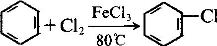 4,4-二氯二苯基三氯乙烷 (DDT,也称二二三) 此外,氯苯还可制备苯胺及多种染料中间体,是重要的化工原料。 苯与氯气在三氯化铁催化下发生取代反应制备氯苯: 实验室中还可用苯胺经重氮化反应制取氯苯 (参见“重氮盐”)。 ☚ 氟里昂 溴苯 ☛ |
