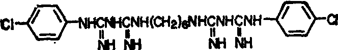 是双胍化合物,有强碱性,一般用其双醋酸盐。是一个广谱的杀菌消毒药。亦抗真菌和绿脓杆菌。无刺激性,毒性低,其活性不受血清、血液、少量阳离子和中性表面活性剂等影响。广泛用于外伤感染、皮肤、粘膜消毒、手术器械消毒。1∶5000水溶液作为手消毒用,0.5%氯苯胍亭的70%醇溶液作手术野准备用,0.05%水溶液作创伤冲洗用,0.1%水溶液作医疗器械消毒用。本品不可与肥皂、阴离子表面活性剂、磷酸盐、碳酸盐、硼酸盐等合用,不可与碘酊、高锰酸钾、升汞等配伍。本品受高温、长时间处理会分解,故1%以上溶液不能用高压灭菌。0.1%以下溶液,高压灭菌时亦不得超过115~116℃30分钟。