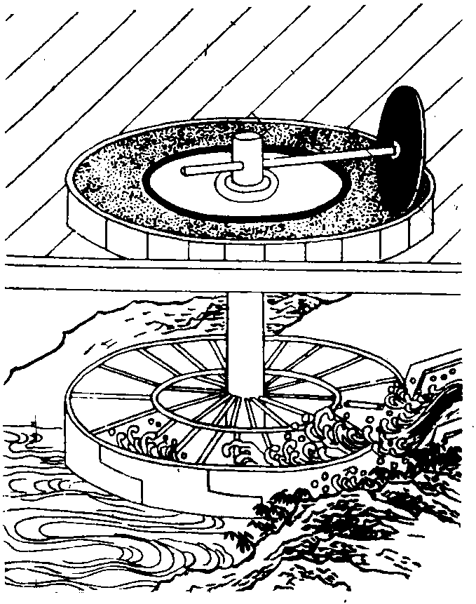 另见:石磨 磨石 ☚ 磨碾具 石磨 ☛ 水碾water-driven mill利用水力进行谷粒脱壳、制粉的加工工具。工作部分与畜力碾同;动力部分与水磨相似,设一较粗大的立轴,上端装辊轴。立轴下端装一卧水轮,或装一卧齿轮及立式水轮。当水冲激水轮转动立轴后带动辊轴及辊回旋转动进行工作。王祯《农书·农器图谱》:“日所毇米,比于陆碾,功利过倍。” 水碾water-powered roller |