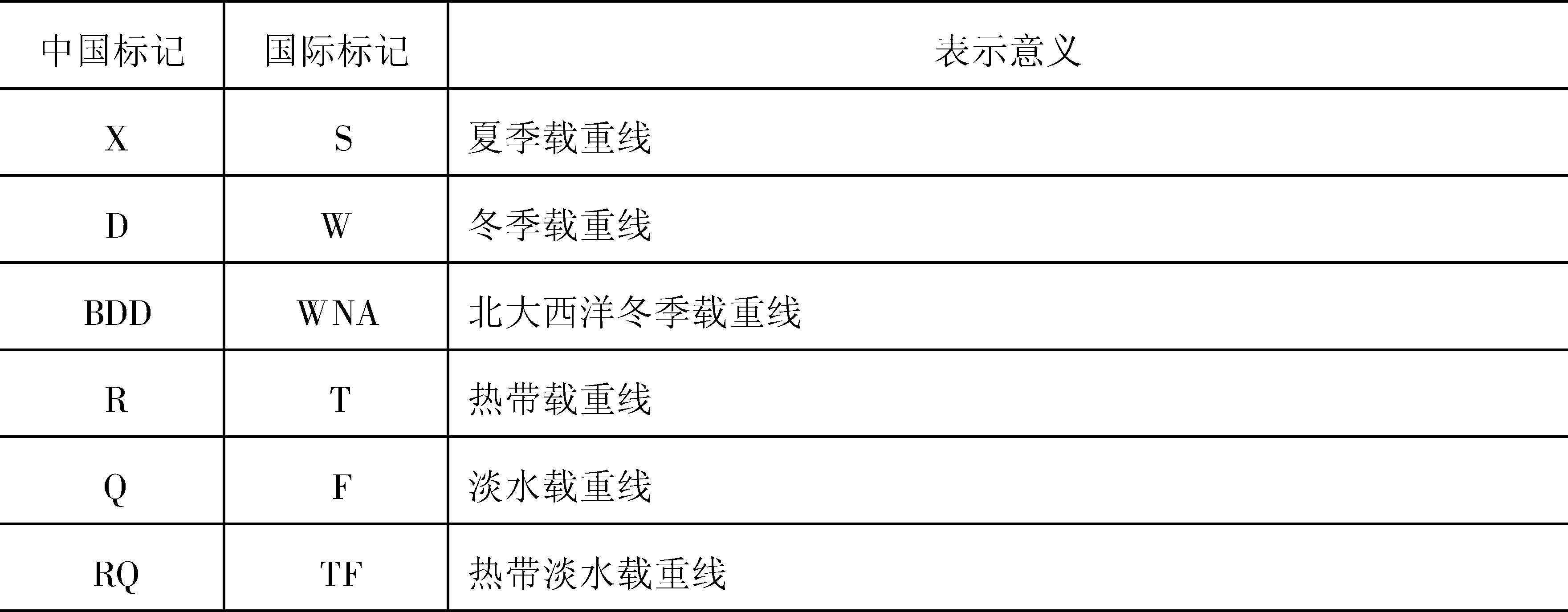 ❷满载水线,指船舶在满载状态自由正浮于静水上时,船体型表面与水面的交线,即对应于满载排水量的水线。为了便于船员及时掌握装载货物时的船舶载重量、吃水等情况,一般船上都备有载重线标尺。载重线标尺是一种图表,从船舶空载排水量到满载排水量之间,以等间距的吃水高度划分,每个吃水高度处均标有与之对应的排水量、载重量、每厘米吃水吨数,并附有载重线标志。