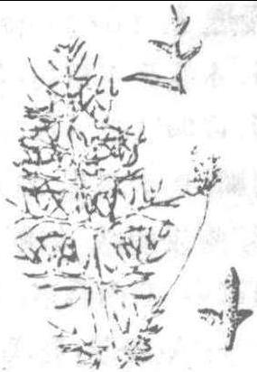 水蕨 水蕨floating fern,oriental water fernCera-topteris thalictroides Brongn.,真蕨纲,水蕨科,水蕨属。一年生水生植物。生于池沼或淤水沟中。分布于长江流域及其以南各省区;亚洲、非洲及欧洲的暖温带和热带其他地区也有分布。植株高30~80 cm,绿色,多汁,幼时漂浮,成长期以须根固着于淤泥中。根状茎短,直立。叶簇生,叶柄与叶片近等长,光滑无毛。不育叶狭矩圆形,2~4回羽裂,裂片披针形。能育叶较大,矩圆形或卵状三角形,2~3回羽状深裂,裂片线形,渐尖头。叶脉网状。孢子囊沿网脉疏生,幼时为反卷的叶边覆盖,成熟后叶边多少张开。全株药用,可散血拔毒,治跌打损伤。嫩叶可作蔬菜或饲料。 水蕨shuǐ jué《本草纲目》菜部第27卷水蕨(4)。药名。 【基原】为水蕨科植物水蕨Ceratopteris thalictroides (L.)Brongn.的全株。 【别名】龙须菜(《植物名实图考》),龙牙草、水松草、水铁树、水扁柏(《广西药植名录》)。 【性味】《华南千种草药》:“甘淡,凉。” 【功用主治】活血,解毒。治痞积,痢疾,胎毒,跌打损伤。 ❶《广西药植名录》:“治跌打、散毒。” ❷《海南植物志》:“茎叶治胎毒,消痰积。” ❸《华南千种草药》:“解毒、止血、止痢、止咳。” |