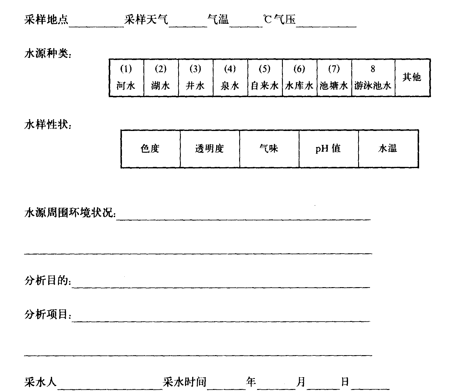 水质测定记录表