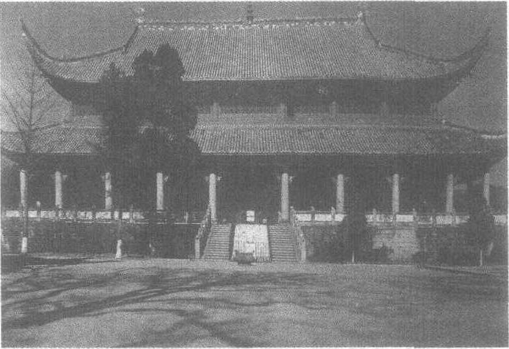 释义 | 永乐宫 永乐宫原名“大纯阳万寿宫”。在山西芮城县永乐镇。该地为道教祖师之一吕洞宾故居,后改为“吕公祠”。金末,扩充为道观,后毁于火,元世祖中统三年重建,名“大纯阳万寿宫”。之后,又陆续建成其他殿,绘制壁画,前后达一百多年。宫内元代的主体建筑有龙虎殿、三清殿、纯阳殿、重阳殿,各殿有精美的元代壁画,如《朝元图》、《纯阳帝君仙游显化之图》等。殿内的斗拱彩画和藻井制作也十分精美。旧址因在三门峡水利工程淹没区内,1959年迁移至芮城县城北龙泉村复原保存。 ☚ 上华严寺大雄宝殿 灵谷寺无梁殿 ☛ 永乐宫 原址在山西省芮城县永乐镇,1959年,拆迁至芮城县北龙泉村五虎庙附近。最早称“吕公祠”,因为据传此地为吕洞宾的俗家住处,为纪念他而建此祠。金代将吕公祠更名“吕公观”。后毁于火灾,元世祖中统三年(1262年),重建,改名“大纯阳万寿宫”,此后,明、清各代屡有修建。现存几座殿堂其建筑风格依然保持着元代的面貌。有三清殿、纯阳殿、龙虎殿等。殿中都有壁画,而且很精美,是目前道观中少有的。现永乐宫已列为全国重点文物保护单位。 古代名物 > 宗教類(下) > 道教部 > 仙境宫觀 > 永樂宫 永樂宫 yǒnglègōng 在山西芮城縣城北龍泉村東。原在永濟縣永樂鎮,1959年因建三門峡水庫移至今址。宫以地名。因祀純陽帝君吕洞賓,故亦稱“純陽宫”。永樂鎮爲道教仙人吕洞賓誕生地,唐代於其故宅建吕公祠,金末擴爲道觀,蒙古太宗三年(公元1213年)毁於火,元中統三年(公元1212年)重建,改爲宫。明清兩代均曾修葺。現存主要建築有山門、龍虎殿、三清殿、純陽殿、重陽殿等,其中山門爲清代建築,餘皆元建。各殿均有元代壁畫。光緒《山西通志·古蹟考·寺觀》:“永樂純陽宫,在縣南百二十里南張村,唐即其地建祠。又爲觀。元中統三年重建,改爲宫。”參閲《嘉慶重修一統志·蒲州府·寺觀》。 永乐宫中国古建筑。原址位于山西省芮城县永乐镇。1959年移至芮城县城北龙泉村东侧。建于元中统三年(1262),属元代宫式建筑。1244年被毁后1252~1262年重建。永乐宫主要建筑均沿纵向中轴线排列,有无极门、三清殿、纯阳殿、重阳殿、丘祖殿(现已毁)。三清殿为主殿。面阔7间,进深4间,单檐四阿顶。三清殿内设柱8根,纯阳殿4根,重阳殿6根。无极门、三清殿、纯阳殿为殿堂型构架。重阳殿属厅堂型构架。三清殿、纯阳殿外檐均为6铺作单抄2昂斗拱。无极门、重阳殿为5铺作单抄单昂斗拱。永乐宫各殿彩画在继承宋代彩画的基础上,又进行了变异和创新。其中三清殿的殿内彩画以青绿色为主,先以墨线勾出轮廓,再填色。三清殿内藏有元代壁画《朝元图》。永乐宫中轴线上建筑群是1组保存较完整的元代道教建筑。 永乐宫 永乐宫位于山西省芮城县北泉村附近。宫址原在芮城永乐镇上,相传此地为道教仙人吕纯阳(吕洞宾)诞生地。死后,其故居改为吕公祠,随着其名声日益扩大,金代末期其祠堂被扩充为道观,金末毁于大火。元时道教极盛。中统三年(公元1262年)重建成“大纯阳万寿宫”。有三座大殿,以后又陆续完成了一些大殿建筑和壁画的绘制,共历时百余年,是我国现存的最早的道教宫观,后改名为永乐宫。主要建筑均立于中轴线上,依次为天极门、三清殿、纯阳殿、重阳殿。这些建筑都是蒙古和元朝建筑。三清殿是主殿,面阔7间,进深四间,上覆单檐庑殿顶。所用斗拱挑出三层。殿身前檐中央五间和后檐明间装有格子门。殿内空间敞朗,顶部彩绘琳琅满目,各构件上彩绘和雕塑保存完好,彩塑结合,十分罕见。殿内壁画满布,全长94米多,是元泰定二年(公元1325年)河南洛阳马君祥等人所绘。其内容为“朝元图”,表现诸神朝拜道教始祖元始天尊的场面。画面上群仙共280多人,帝君庄严肃穆,玉女优雅美丽,天将威武凶悍,其他还有力士、宿星、仙侯、仙伯、左辅、右弼等,人物表情依身分不同各有所异。画面构图严谨,场面宏大,个体间彼此呼应,衬以祥云瑞气,仙境气息浓厚。画工使用重彩勾填法,用笔劲健流畅,飘舞的衣带增添了画面的生动。设色以石青、石绿为主,色彩厚重而丰富。沥粉贴金技法的运用又增添了富丽绚烂的艺术效果,是民间画工的高水平代表作,在元代画坛上独树一帜,在我国美术史上占有重要的一席。纯阳殿亦称吕祖殿,面宽五间,进深三间,单檐九脊顶,是供奉吕纯阳的殿宇。此殿的建筑结构近于宋代殿堂式构架。重阳殿面宽五间,单檐歇山顶,殿内四根金柱,梁架全部露明,仍沿袭宋、金“草栿”作法。殿内原供奉道教全真派首领王重阳及其七个弟子的塑像,故殿名为重阳殿。纯阳殿及重阳殿皆满布壁画,绘有“吕洞宾故事图”、“王重阳故事图”,像连环画一样,分别以52幅和49幅将吕洞宾和王重阳的传说故事表现出来。每幅画之间有景色,如山石、林木、河流等相隔,远看又似一个绘画整体。绘画虽是宗教画题,但画中有宫廷、村落、城镇、街市、酒店、民舍及各阶层人物,为研究宋、金、元社会制度及社会生活和风貌提供了珍贵资料。除此之外,永乐宫大殿殿顶的琉璃雕塑也颇负盛名,其中以三清殿最为华丽,两个龙吻高5米,整体为一条盘绕曲折的巨龙,并配龙王、雨师、流云等,施孔雀蓝釉。脊筒以绿釉作底色,主纹施金黄釉,垂脊上有海鱼、海马、狮等。四角端的孔雀蓝釉角神形象威严。此外殿顶还以黄、绿、蓝三彩琉