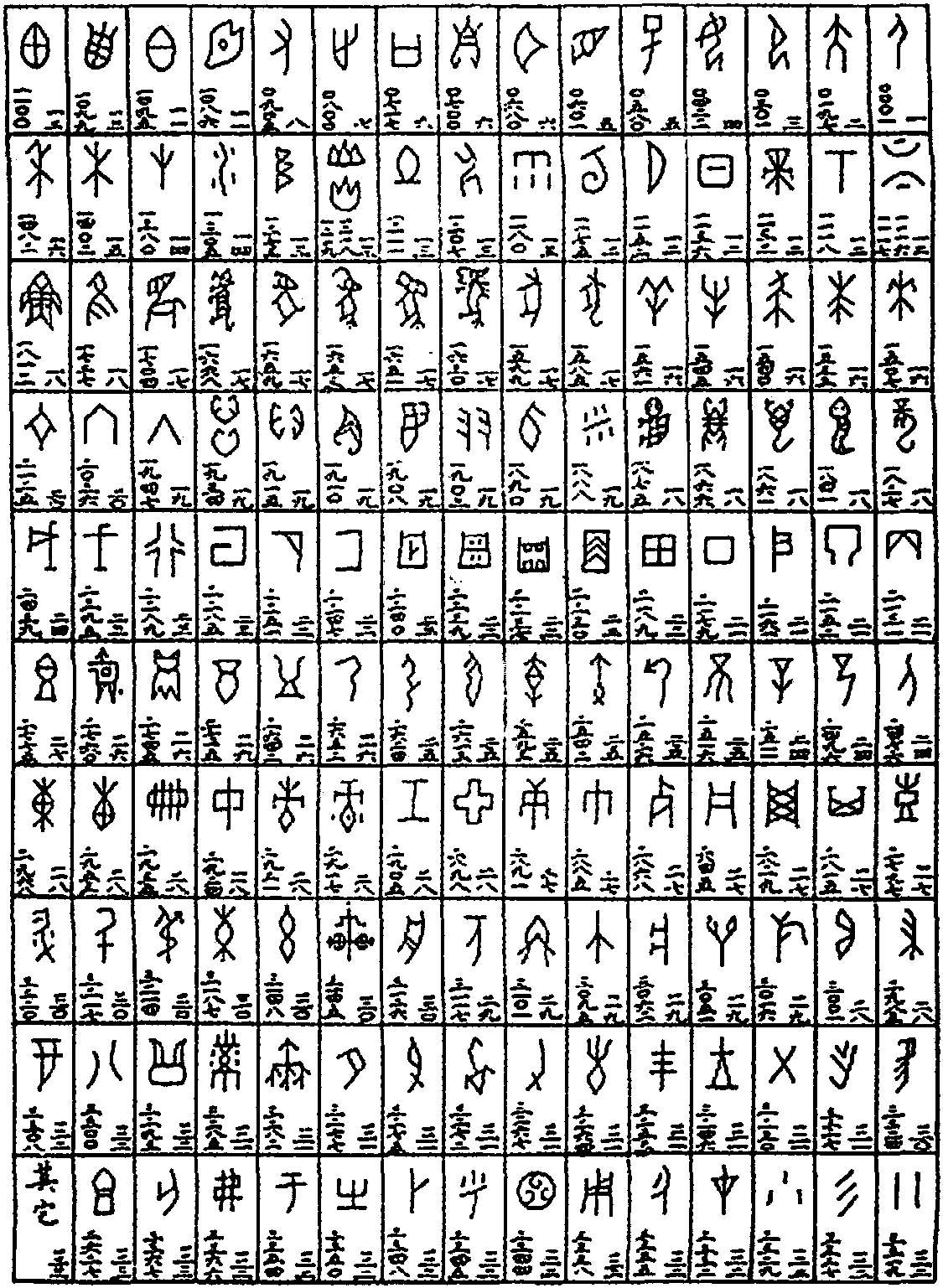 三,幾點說明 (一)于省吾(1896-1984)先生是當代著名的中國文字學家,學養深厚,著有《甲骨文字釋林》,他的研究澤被中華。《甲骨文字詁林》是由他主編的,於1996年5月出版。《詁林》可以說是對殷墟甲骨文自發掘以來近百年研究成果的總結。 于先生集眾家之所長,從中概括出了150個構成甲骨文字系統的字根字,並臚列出了一個《部首表》。《部首表》是甲骨文字研究“千棰打鑼,一棰定音”的集大成者,具有階段性、里程碑的意義,難能可貴。如今是所有研究漢字學者的無一逾越的入門嚮導。 (二)《部首表》也有欠缺。 隨著國家文化軟實力的凸显,古文字研究在不斷發展,研究的層次也不斷深入,研究的內容、視域也在進一步擴展,《部首表》在今天看來不無缺憾: 1.理念不夠清晰。 東漢許慎《說文解字》所釋的9353字,是起於一而終於亥。起於一者,“一”是萬物之始,“道生一,一生二,二生三,三生万物”;終於亥者,亥是十二地支最後一位,是時序、物序上的終止。 許慎釋一:“惟出太始,道立於一,造分天地,化成萬物。”《部首表》起人終且(祖),想象不到所依理念。其實“人”與“祖”是一類事物,文字屬於空間的視覺符號,從空間上講,有序次不順,理念不清,內容編排也有些混亂。 2.理據無依。 《說文解字》序的開篇句首:“古者庖犧氏之王天下也,仰則觀象於天,俯则觀法於地,視鳥獸之文與地之宜,近取諸身,遠取諸物,於是始作《易八卦》,以垂憲象。”許慎這裏的“始作《易八卦》”和“以垂憲象”作為《說文》的開山之斧,自然說的就是文字的起源。“漢字起源於八卦”,這是近兩千年以來文字說解的一個恒定的根本理據。 古代從來沒有人說過“漢字起源於圖畫”,也從來沒有人說過“漢字起源於語言”,祇有當代一些人受西方“語言中心論”的誤導,才提出了“象形說”和“語言說”。加上“革命”的夾裹,其勢頭至今難以逆轉。因此,從《部首表》中看不到恒定的理據,也就很正常了。 3.個別部首設置也欠準確。 從整體的角度看,一些字是不必作為部首的,如“ ”、“ ”、“ ”、“㞢”等;一些字可以歸為一類,如“ ”和“ ”;“ ”和“ ”;“ ”、“ ”和“ ”;“ ”和“ ”;“ ”和“ ”等。 一些必須是部首的字,如“ ”(衣)、“ ”(身)、“ ”(氣)、“ ”(尸)、 (弋)等《部首表》卻未列出。部首設定不準,就會影響被依托字的正確詮釋。當然,于先生初次將甲骨文排出150個部首,也是難能可貴的。 4.從總體上說,《詁林》和《部首表》的最大遺憾是,仍然順著《說文》的溪流淌下來。 (三)幾點啟示。 1.殷墟甲骨文字出土以後,老一輩文字大家們作了相當的努力,這是事實,但由於種種原因,使得中國的文字研究未能出現階段性的新局面。 2.甲骨文字是易八卦理念旨統下的理性產物。中國文字的起源,是在《易八卦》爻符和卦象具有形而上抽象意義的基礎之上,經過理性轉換而形成的文字系統。象形文字是文字形成的一種方式,這是符合實際的,但要說甲骨文是象形文字,則大謬不然。一種方式不能代替多種方式,更不能成為決定性的方式。就拿《部首表》來說,150個部首中除車、龜、魚、象、犬、豕、网等11個暫定為象形,其餘139部首都是按易理的框範所形成的文字,象形字佔不到8%,可見由這139個部首所孳乳了整個甲骨文的表意系統。甲骨文是易八卦理念的理性產物,這似乎是一個不容置疑的結論。 3.甲骨文就是以形表意的文字系統。 漢字起於形,而非起於音。就說甲骨文,它的產生和西方字母文字的形成是決然不同的。字母文字是按照發音而設計的拼音文字,是用“音”表意的。漢字一字一詞,字中先天就有了音節,是用“形”來表意的。 “形”是空間的視覺範疇,“開篇玩古,萬里共明;削簡傳今,千年對面”;而“音”則是時間的聽覺範疇,稍縱即逝,不留痕跡。時至今日,當我們還能看懂三千多年以前骨片上所契刻的文字、文章,是因為它的“形”和形的一脈相承。因此,說漢字是語言的符號或者說文字(文章)就是語言那是極其錯誤的,也是有害的,漢字正是在這堂而皇之的“語言中心”的鼓噪中,被陷入災難。 4.甲骨文也不是象形文字。 從《部首表》揭示的秘密看,所謂的象形字也占不到百分之八的比例。不到百分之八比例的象形字,就說甲骨文是象形字,難免有失偏頗。就拿許慎在《說文解字·敘》中所論證的“象形者,畫成其物,隨體詰出,日月是也”來說,恰恰“日”、“月”二字才是典型的用易理澆灌出來的會意字呢。說甲骨文就是象形字,以偏概全,豈不荒唐! 但是,許君撰寫《說文》的時候,不能不受到諸多限制,尤其是他沒見過甲骨文,金文的接触估計也不會太多,唯一是用由大篆脫胎的小篆字形作藍本,所釋的9353字難免舛誤多多。今人不必苛求古人,在時過近千年、殷墟甲骨文已出土一百多年、非學理性簡化漢字和強制推行簡化字在大陸已經有半個多世紀的今天,很有必要對《說文解字》進行一番醽漉,以洗刷蒙在中華文化上污垢,使中華漢字更加燦爛輝煌。 甲骨文不是象形文字。 “五四”运动以前,所有的文字大家們沒有人断定中國的文字起源於象形。他們所說的“象形”是指“在天為象,在地為形”的象形。是指古人仰觀天於象,俯察地於形,造出了文字。並非現代人所說的“象形文字”。“象形文字說”是“五四”以降,“十月革命”炮聲