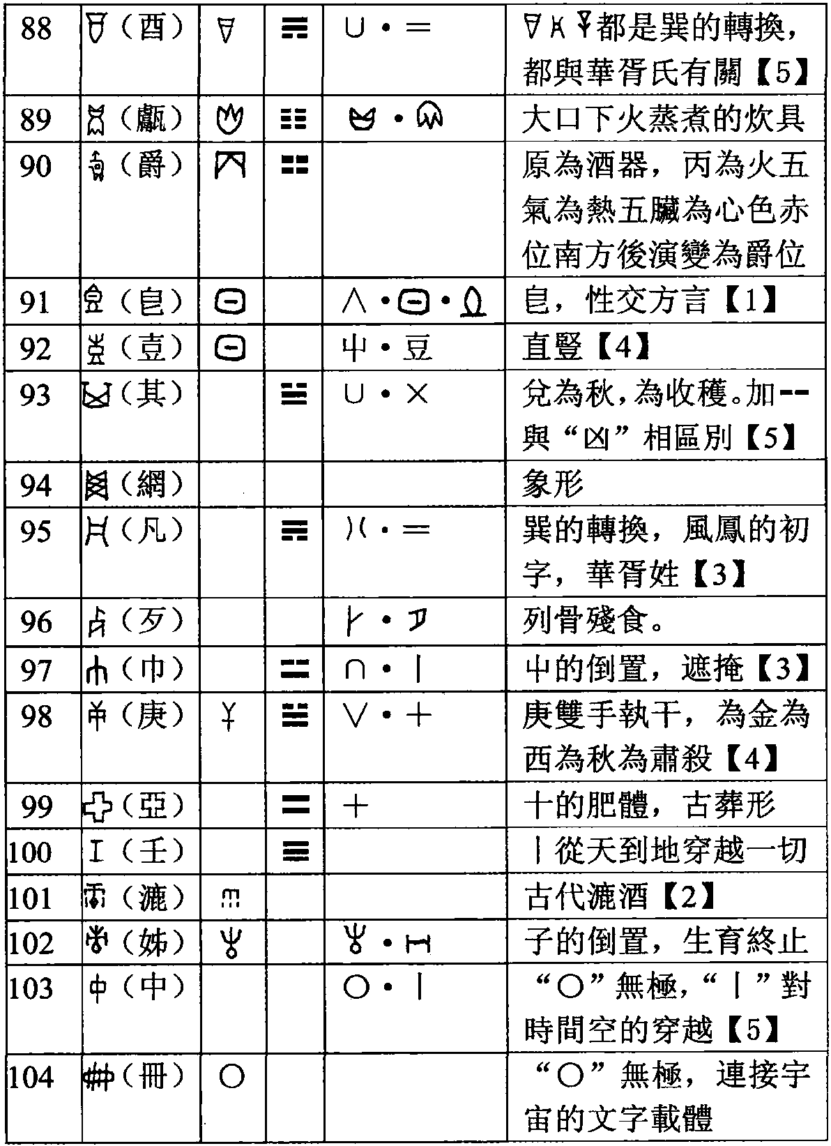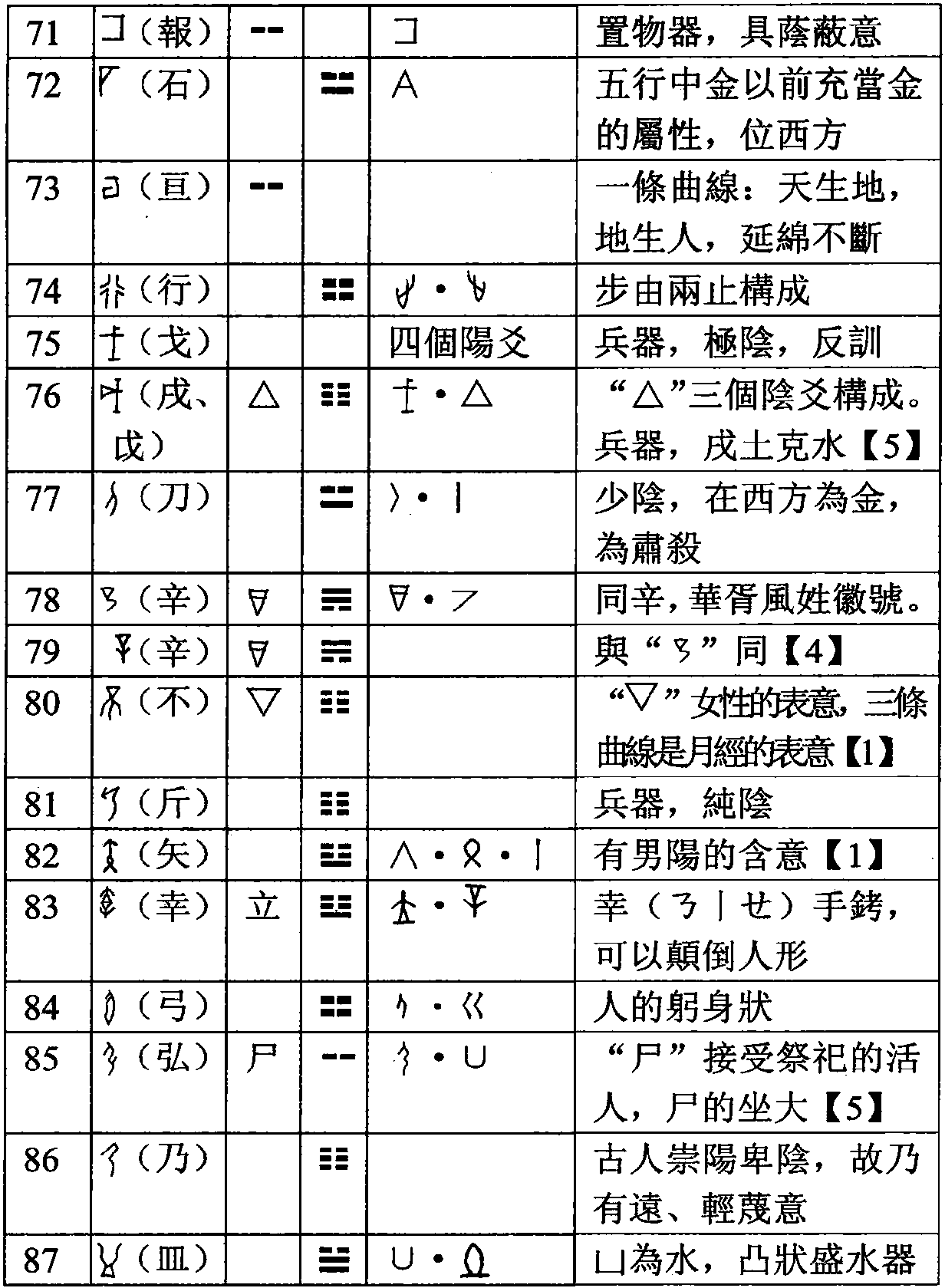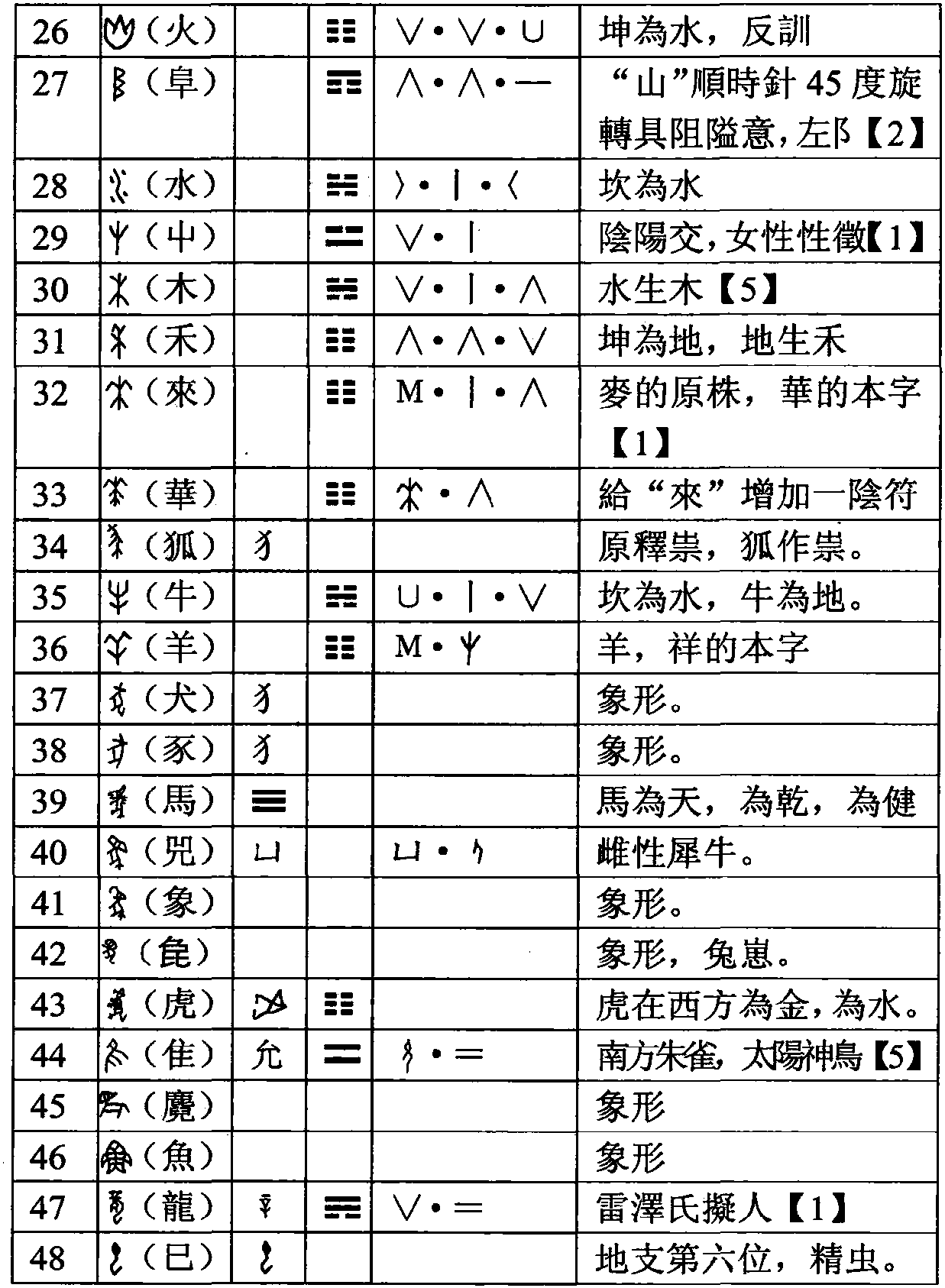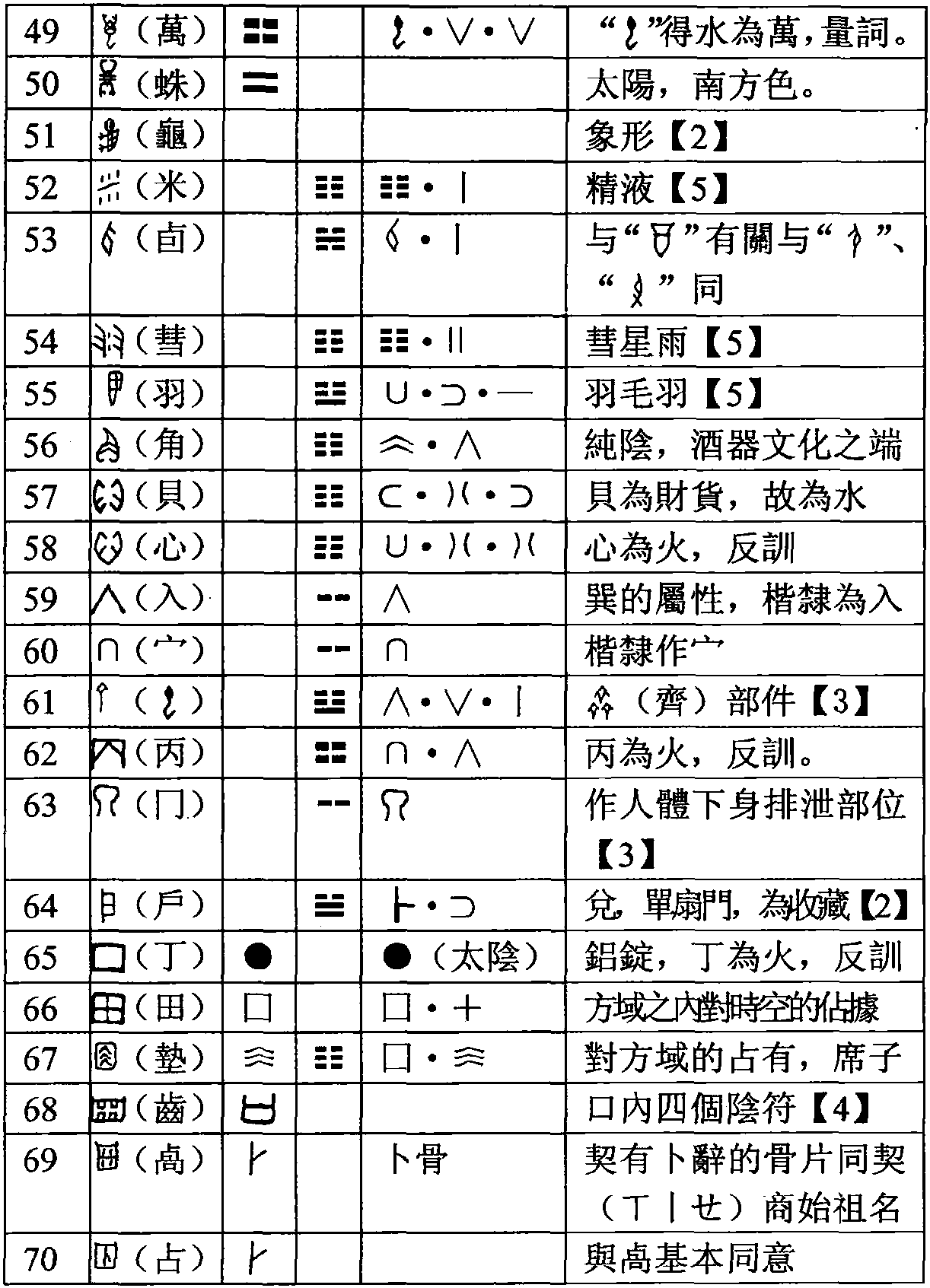 二、甲骨文字部首與八卦符號轉換 (註釋欄內【】是《字揆》已釋字,標數是集的序次)