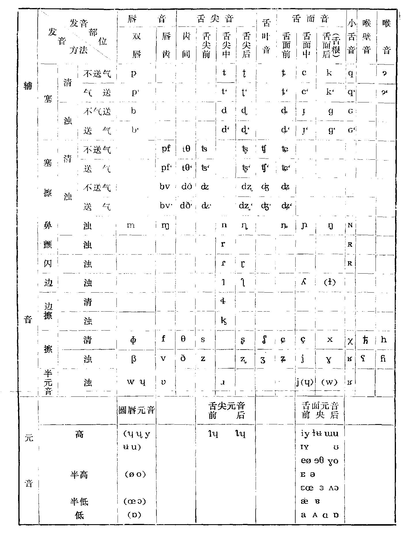 汉苗词典︱附录(一) 附录(一) 国际音标表