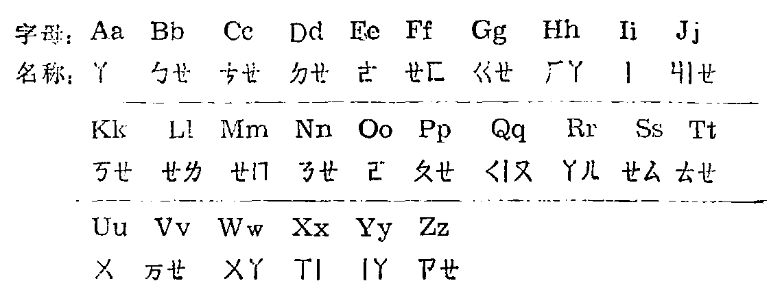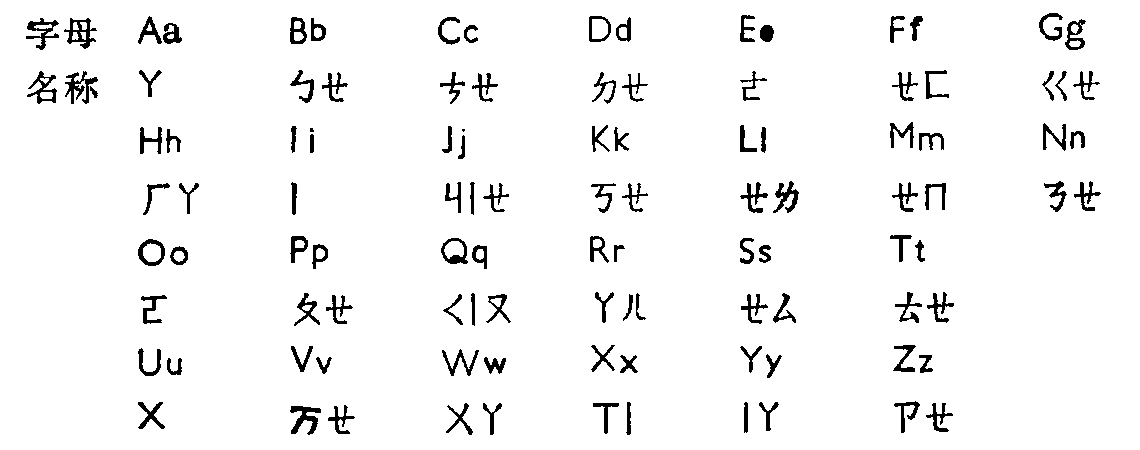 ∨只用来拼写外来语、 少数民族语言和方言。字母的手写体依照拉丁字母的一般书写习惯。二 声母表