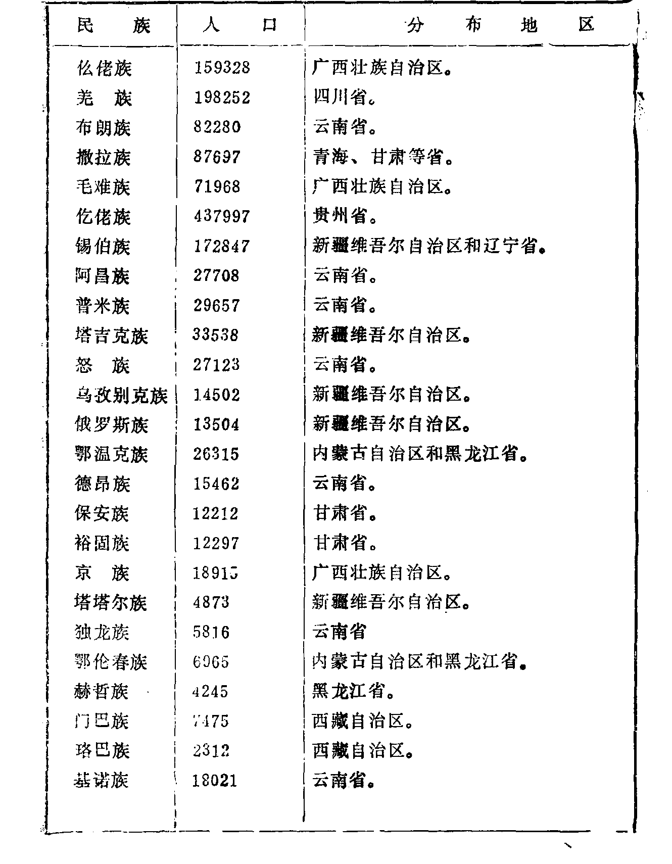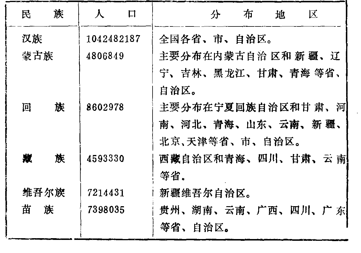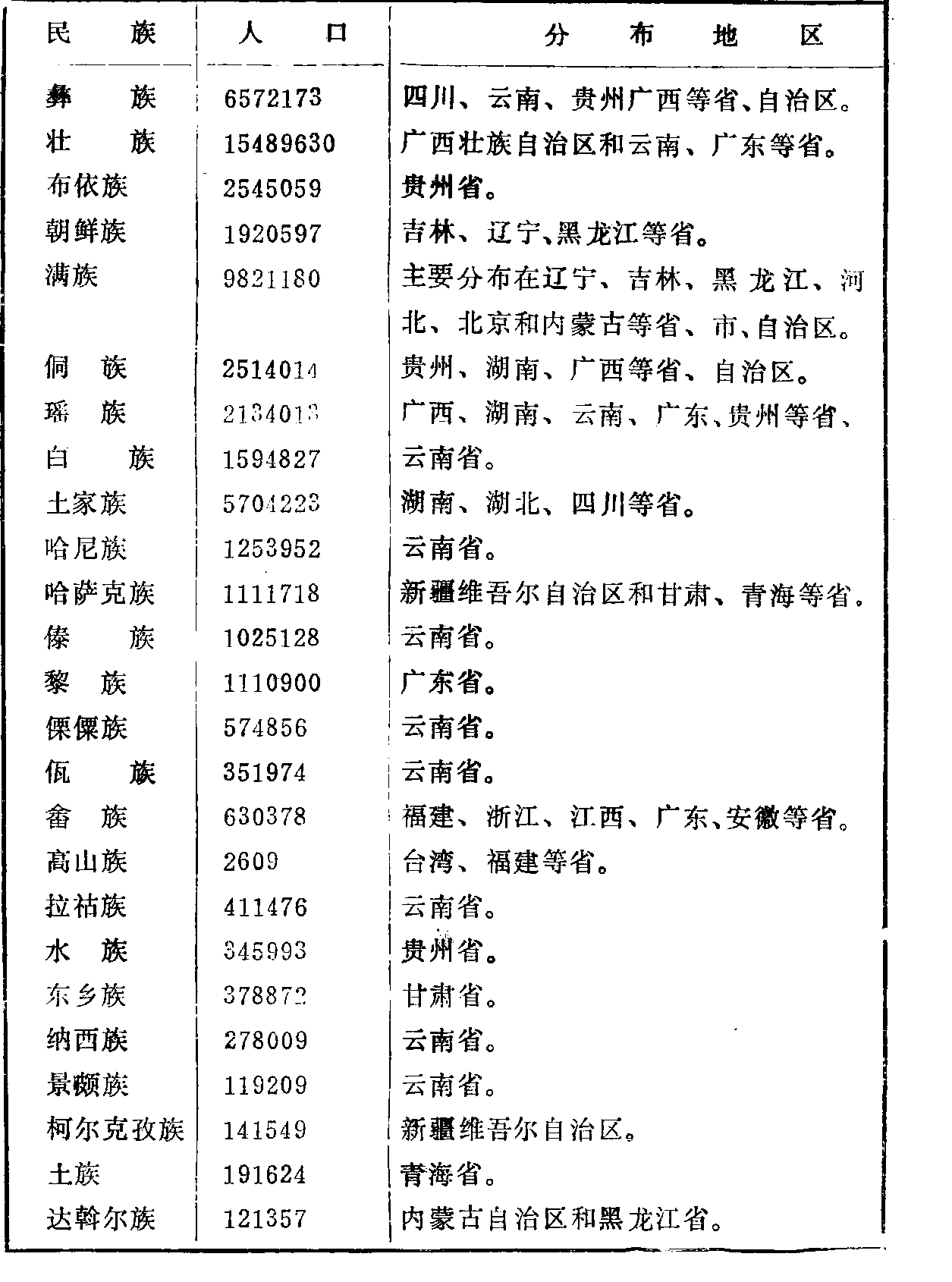 表中数字是根据中华人民共和国国家统计局关于1990年人口普查主要数据的公报(见1990年11月13日人民日报), 汇总大陆30个省、 自治区直辖市和现役军人的各民族人口数。 |