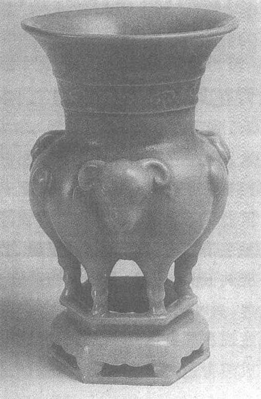 释义 | 汝窑天青釉窑变米色三羊瓷尊 汝窑天青釉窑变米色三羊瓷尊宋。高20.4厘米,口径12.5厘米。台北故宫博物院藏。侈口,喇叭形颈,腹部由三羊组成,羊首写实,羊身写意。六羊足踏于六边形镂空器座之上。颈部饰云纹一周。施天青窑变釉,开细片纹,颈部有桔眼。棱角釉薄处显露黄胎。器底未施釉,六角各有支钉痕一枚。宋代五大名窑中汝窑传世品最少,此件造型奇特的瓷尊是其中的一件珍品。汝窑见“‘寿成殿皇后阁’汝窑青釉瓷盘”条目。 ☚ “奉华”款汝窑粉青釉瓷尊 官窑粉青釉瓷觚 ☛ |