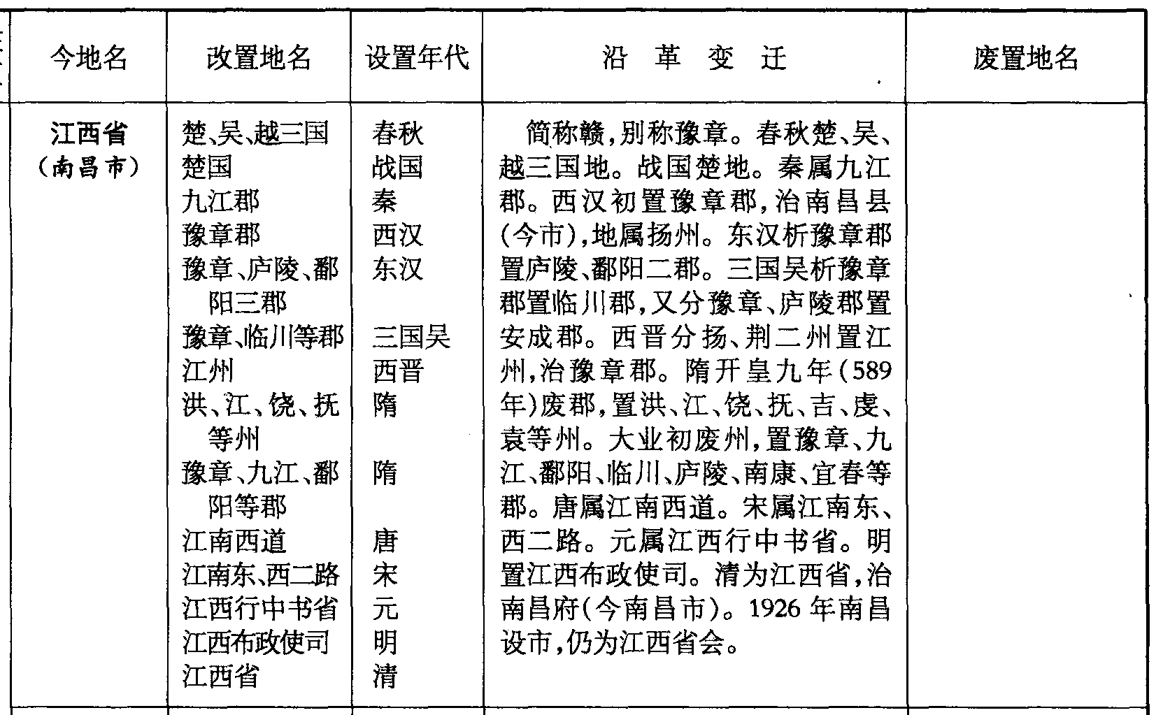 简称赣,别称豫章。春秋楚、吴、越三国地。战国楚地。秦属九江郡。西汉初置豫章郡,治南昌县(今市),地属扬州。东汉析豫章郡置庐陵、鄱阳二郡。三国吴析豫章郡置临川郡,又分豫章、庐陵郡置安成郡。西晋分扬、荆二州置江州,治豫章郡。隋开皇九年(589年)废郡,置洪、江、饶、抚、吉、虔、袁等州。大业初废州,置豫章、九江、鄱阳、临川、庐陵、南康、宜春等郡。唐属江南西道。宋属江南东、西二路。元属江西行中书省。明置江西布政使司。清为江西省,治南昌府(今南昌市)。1926年南昌设市,仍为江西省会。