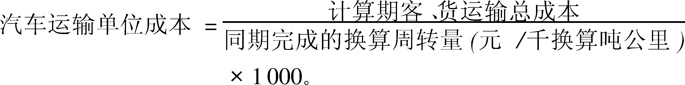 汽车运输经营者在一定时期内完成的运输量所平均分摊的运输费用支出。即单位换算周转量成本。反映汽车运输部门或企业成本水平的指标。计算公式为: