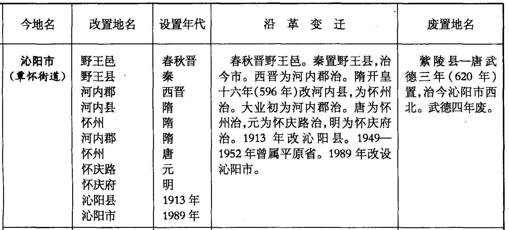 春秋晋野王邑。秦置野王县,治今市。西晋为河内郡治。隋开皇十六年(596年)改河内县,为怀州治。大业初为河内郡治。唐为怀州治,元为怀庆路治,明为怀庆府治。1913年改沁阳县。1949—1952年曾属平原省。1989年改设沁阳市。