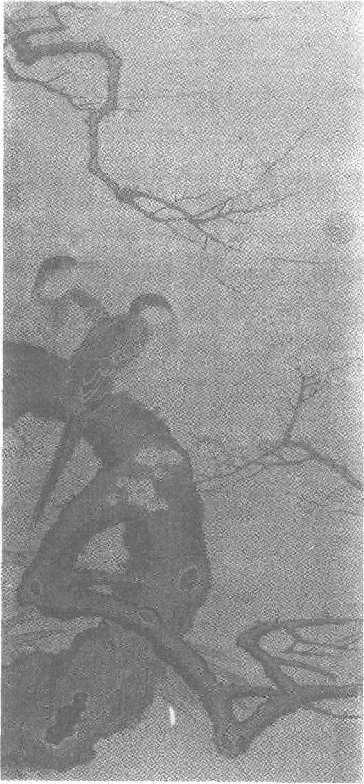 南宋。纵89.5厘米,横35.5厘米。北京故宫博物院藏。此缂丝以米黄色为底,花纹以青灰、普蓝为主,配绿驼、水粉诸色,以石青色勾边,色调高雅;经线密度每厘米20根,纬线密度每厘米44—46根,经线直径约为0.15—0.2毫米,纬线直径为0.3毫米,运用了平戏、单子母经、木梳戏、长短戏、搭梭等缂丝技法,配以十五、六种颜色丝线。缂丝画面为一株梅树,老干挺劲枯硬,新枝细润舒张,枝上有几颗花蕾含苞欲放,几朵盛开的梅花粉嫩俏丽,树干上栖依着两只喜鹊,一只转首回顾,一只缩颈收身将头伸入翅下;树下隐露着几枝清晰的竹叶。左下方缂制有〈子蕃制〉和〈沈氏〉两方印款,钤有〈乾隆宸翰〉、〈乾隆御览之宝〉、〈石渠定鉴〉、〈宝笈重编〉、〈石渠宝笈〉、〈乾隆鉴赏〉、〈嘉庆御览之宝〉、〈果祝王府图书记〉、〈宜子孙〉、〈子孙世保〉、〈蕉林梁氏书画之印〉、〈养心殿鉴藏宝〉等印。此缂丝表现了一幅生机勃勃的早春气息景致,其技法细腻,丝纹匀细,神韵生动,设色淡雅,是南宋缂丝名艺沈子蕃的传世代表作品之一。沈子蕃,南宋缂丝名艺,生卒不详,吴郡(今江苏苏州)人。缂制是以名人书画为粉本,用缂丝的技法,将原画缂得惟妙惟肖,生动传神,工丽典雅,色泽古朴。沈子蕃的“梅花寒雀”、“秋山诗意”、“梅鹊”等都被列为传世珍品。