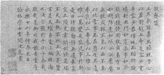 明。纸本。纵23.8厘米,横49.4厘米。北京故宫博物院藏。沈度(元至正十七年一明宣德九年,即公元1357—1434年),字民则,号自乐,华亭(上海松江)人。永乐间以能书召入翰林,官侍讲学士。博涉经史。书法师虞世南,擅篆、隶、楷、行各体,以婉丽端庄的书风著称于世,为明初“馆阁体”代表书家,与其弟沈粲称“二沈”。这件作品,是沈度62岁时所书,结体稳健匀静,运笔圆润清劲,是“馆阁体”典型面目。