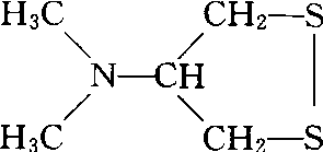 沙蚕毒素nereistoxin异足索蚕(沙蚕)体内的一种毒素。化学名称: 4-N,N-二甲氨-1,2-二噻戊烷。化学结构式如下。这种沙蚕被误食后,常感头痛、呕吐、呼吸短促。家蝇在沙蚕体上爬过,即可致中毒。经研究确定沙蚕毒素的化学结构、并衍生出沙蚕毒素类杀虫剂,如杀螟丹、杀虫双、易卫杀及杀虫磺等。这类杀虫剂对昆虫有很强的胃毒和触杀作用,而对高等动物较安全。在昆虫体内代谢形成沙蚕毒素侵入到昆虫神经组织突触部位,有可能取代乙酰胆碱,与乙酰胆碱受体(AchR)结合,切断突触部位的正常神经兴奋传导。昆虫接触沙蚕毒素杀虫剂后,动作显著变慢、停止发育、虫体软化、瘫痪而死亡。