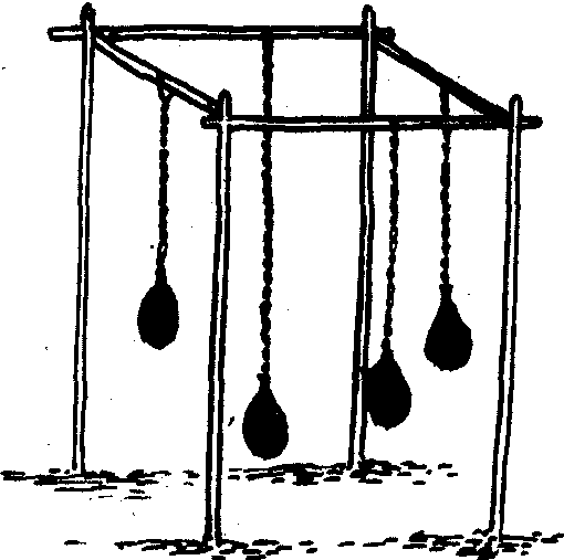 释义 | 沙袋功 沙袋功传统操功方法。亦称“沙包功”、“吊袋功”。沙袋以白帆布(或软皮)制成圆形或梨状袋,内装细沙,其重量随习者水平的提高而增加。初练时,每袋重20斤即可。练习方法是将数个沙袋分悬于一个长方形筐架的四条横樑中间,筐架高1丈2尺、长度均为7尺。沙袋悬置的高度有两种:一种是数袋均与胸同高;另一种袋高不等。练习者站于沙袋中间,以头、肩、肘、手、胯、膝、足任意撞击沙袋。当沙袋被击,来回摆动时,练习者则边躲闪、拦截,边击打荡回的沙袋。这种练习法多用于提高身体各部位的击打实力和躲闪能力。见《武术汇宗》、《练软硬功秘诀大全》。