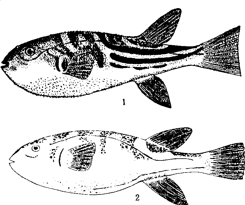 鱼,头圆口小,背黑褐色,腹部白色,血液和部分器官有剧毒。
