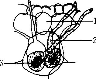 释义 | 油壶菌属Olpidium鞭毛菌亚门,壶菌目。菌体内寄生,无假根,整体转变成单个球形或椭圆形的薄壁、平滑、无色的孢子囊或配子囊,泄管长短不一,从寄主细胞壁上伸出体外,释放游动孢子或游动配子,同型游动配子成双结合形成合子,萌发侵入寄主后发育成菌体并转变为近球形、黄色至黄褐色、厚壁、平滑或皱褶的休眠孢子(囊)。常见的有芸薹油壶菌[O.bras-sicae(Woron.)Dang. ],引致十字花科植物幼苗猝倒病。 油壶菌属的孢子囊 1.寄主细胞 2. 泄管 3.孢子囊 |