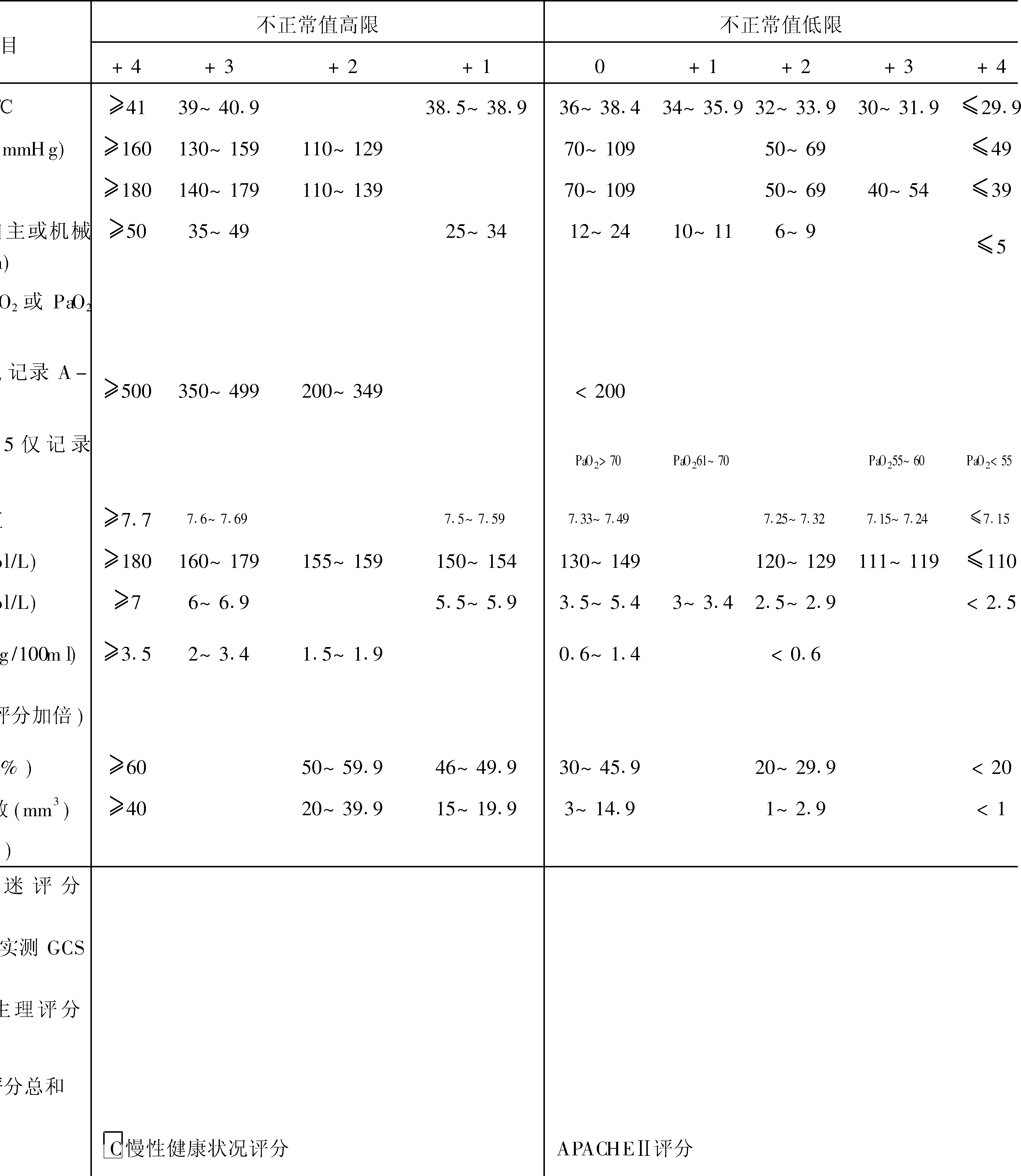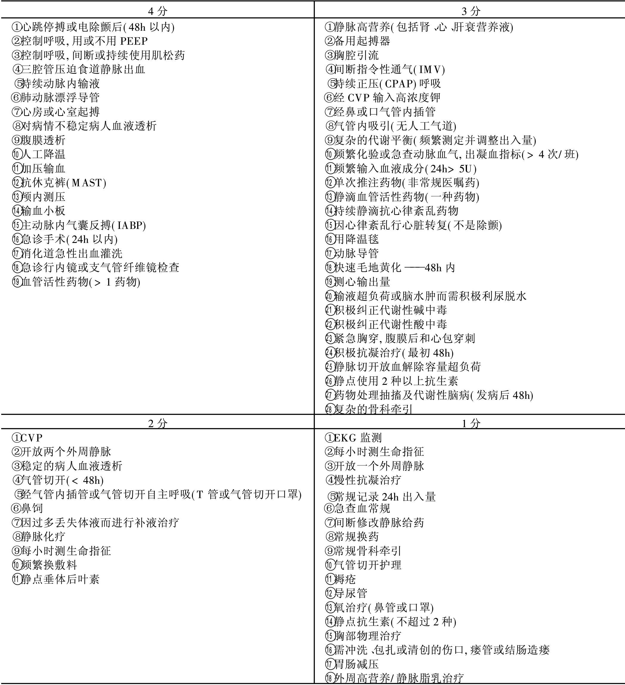 释义 | 治疗评分法 治疗评分法therapeutic intervention scoring system,TISS关于病情严重程度的评估目前临床上还缺乏统一的标准。为了评估病人是否应转入或转出ICU,也为了便于分析疗效和评价ICU医护质量的优劣,用一种对病情严重程度评估的量化标准,可能更为规范、科学。1974年美国重症医学会推荐的“治疗评分法”已能较明确地判断和表达病情的严重程度,可谓对病情的衡量有了一定的尺度。1983年对1974年的TISS又作了补充修正TISS-1983(见表1)。TISS的评分主要是以病情或治疗措施为基础,未涉及病人的(病理)生理和健康因素,这些因素显然与病情的严重程度、疗效和转归密切相关。因此又复有所谓“急性(指即时)生理和慢性(指平日)健康评估”(acute physiology and chronic health evaluation,APACHE)的推荐。1985年APACHE经过修订以后成为APACHEⅡ(见表2)。 表1 治疗评分系统(therapeutic intervention scoring system,TISS-1983) 表2 APACHEⅡ疾病严重程度分类系统 ☚ 术前肝脏功能的评估 Possum评分 ☛ |