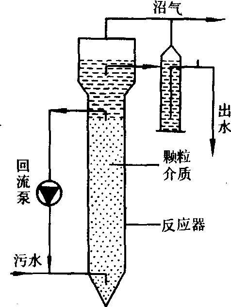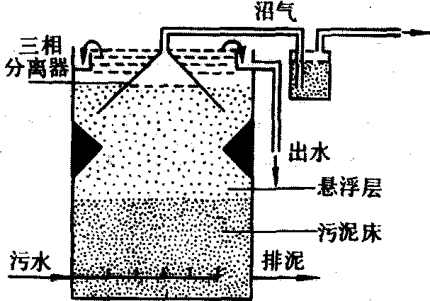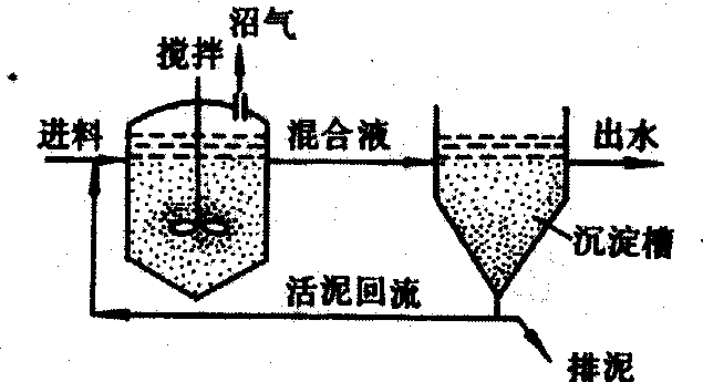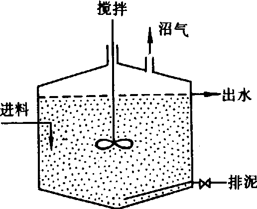 释义 | 沼气发酵工艺biogas fermentation technology在厌氧条件下,通过微生物活动,处理有机废物制取沼气的技术与装备。也可称为厌氧消化工艺。由于被处理原料的性质和微生物生长繁殖所需条件的不同,沼气发酵工艺是各种各样的。随着人们对沼气发酵机理的深入研究,工艺在不断改进发展中。因发酵装置的结构和性能的不同,工艺类型分为:常规消化工艺、全混消化工艺;高效的厌氧接触工艺、厌氧滤器消化工艺、上流式污泥床厌氧消化工艺、厌氧膨胀床消化工艺、流化床厌氧消化工艺;以及两阶段厌氧消化工艺、干发酵工艺、填埋厌氧消化工艺等。 图1 常规消化器示意 全混消化工艺 在消化器中设有搅拌装置使发酵料液处于完全混合状态,改变了常规消化工艺料液分层现象,使微生物的活动区遍布整个消化器,因而其消化速度比常规消化工艺有明显提高(图2)。采用该工艺常在恒温下连续投料运转,进入消化器的高浓度原料,很快与消化器内全部发酵液混合,原料被稀释,经消化后排出的料液浓度,与消化器内参与反应的料液浓度相等,因而出料过程中,发酵微生物也随之排出,增加了出料浓度,减少了消化器内微生物的数量。为了维持消化能力,微生物的排出速度不得高于微生物生长速度,即发酵原料的滞留期不能低于活性污泥的倍增时间。因此要定出合理的滞留期,并加大进料浓度。一般进料COD(化学需氧量)浓度不应小于5000毫克/升,也就是说,该工艺不适宜低浓度有机污水的处理,而适用于处理高浓度有机污水及高悬浮固体含量的有机废物,如禽畜粪便等的厌氧消化。高速消化工艺在中温情况下一般负荷为COD 2~3千克/立方米·天,高温情况下为COD 5~6千克/立方米·天。 图2全混消化器示意 厌氧接触工艺 在全混消化器的出料处增设一个沉淀槽,用以收集排料中的活性污泥,并将其回流主发酵器内(图3)。该工艺的特点是由于活性污泥的回流既延长了固体的滞留期,又可提高发酵器内活性污泥的浓度,同时还减少了出料中的固体物含量,从而提高了有机负荷和处理效率。由于有了较长的活性污泥滞留期,所以适用于浓度较低的有机废水处理。一般为COD 2000毫克/每升以上。当进料浓度较高时,发酵器也可承受较高负荷。 图3 厌氧接触工艺 厌氧滤器消化工艺 是一种采用截面菌种过滤技术的装置(图4),消化器内填充有惰性介质,通常采用颗粒直径为25~38毫米的碎石、卵石、焦炭、煤渣、各种形状的塑料制品、陶土制品或软性纤维填料。微生物尤其是产甲烷菌,呈膜状附着于惰性介质的表面,并在介质颗粒之间的空隙里互相粘附成颗粒状或絮状物存留下来。当有机污水向上流动通过生物膜时,微生物获得营养物质和能量而生长,有机物被细菌消化而去除。滤器中填料的空隙率约占总体积的40%,随微生物生长、生物膜增厚,会导致滤器堵塞。这是该工艺存在的主要问题。污水中COD的去除率不仅与水力滞留期(HRT)有关,而且在很大程度上取决于污泥滞留期(SRT)。根据美国科学家麦卡蒂(P. L. Mecarty)等的实验结果(图5),在一定时间范围内,在HRT不变的情况下,COD的去除率与SRT呈正相关。许多实验表明,在保持同样去除率的情况下,提高SRT可以大大缩短HRT,从而缩小消化器的体积。这种将SRT与HRT分开,使发酵器内积累尽可能多的活性污泥的做法,推动了厌氧消化技术的发展。 图4 厌氧滤器装置结构 图5 COD去除率与污泥滞留期的关系曲线 上流式污泥床厌氧消化工艺 简称UASB,是荷兰兰庭格(G. Let-tinga) 于1977年研究成功的一种厌氧消化工艺。该工艺装置结构比较简单(图6),效率高,运转费用较低。消化器底部由浓度很高,并且具有良好沉降性能的絮状或颗粒状活性污泥形成污泥床。有机污水从反应器的下部进入污泥床并与活性污泥接触。污泥中的微生物分解有机物生成沼气,由于气泡上升的搅动作用,使发酵器上部的污泥处于悬浮状态,形成逐步稀薄的污泥悬浮层。消化器顶部安装有气、液、固三相分离器。在分离器下,首先将沼气收集经管道输走,固体与液体进入沉淀区,污水中的污泥发生絮凝,颗粒逐步增大,在重力作用下沉降。分离器的倾角,各为50°左右, 沉淀在斜壁上的污泥, 沿着斜壁滑回发酵器内,使发酵器内积累起大量活性污泥,分离出的废水从上部溢流排出。此类发酵器的高度一般为3~6.5米。 图6 上流式厌氧污泥床 在上流式厌氧污泥床内,颗粒污泥的形成和增多对提高消化器负荷及运转稳定性均有明显作用。采用经厌氧消化后的猪粪、牛粪、污泥等残余料做接种物,均可在运转过程中形成颗粒污泥。据观察,起动运转50天后,颗粒污泥即开始形成,但颗粒直径较小,一般为400~700微米。运转100~200天后,大多数颗粒污泥的直径在1~2毫米之间,最大可达6毫米。形成颗粒污泥的条件是: ❶应供给细菌生长所需要的足够营养物质。 ❷去除进料中非絮凝性或絮凝性差的悬浮固体; ❸创造有利于加速颗粒絮凝的条件,如保持一定量的钙离子浓度等。上流式厌氧污泥床与厌氧滤器,都是微生物滞留型厌氧消化工艺装置,温度和底物浓度的变化对底物消化速度的影响,不像完全混合式细菌呈分散状态影响那样大。生物膜和颗粒污泥,对温度及底物浓度的变化有较强的缓冲能力,因而使该工艺具有更大的稳定性。 膨胀床和流动床厌氧消化工艺 两者同属于附着生长型生物膜消化技术,20世纪70年代中期,美国学者