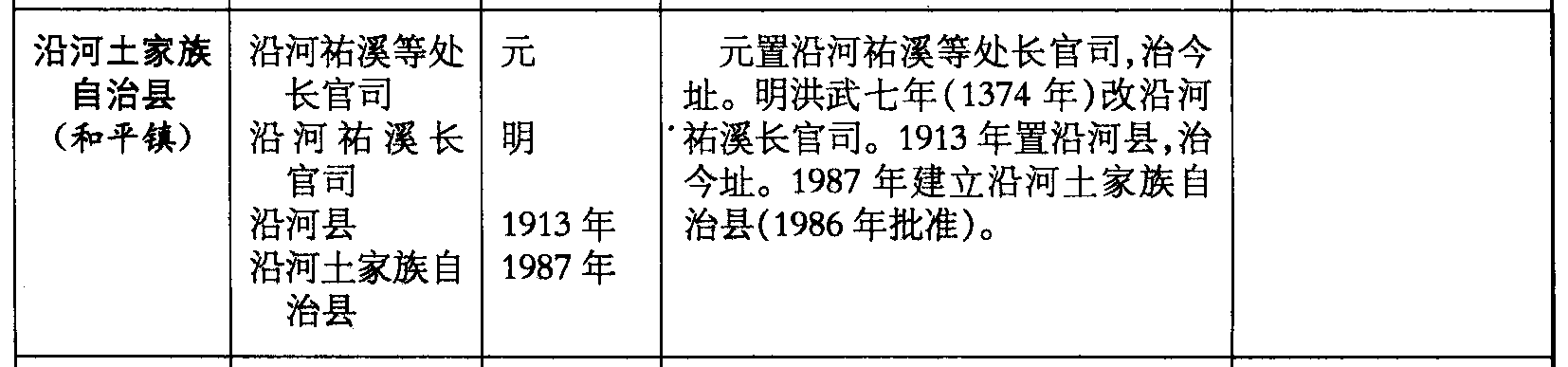 沿河土家族自治县(和平镇)沿河祐溪等处长官司沿河祐溪长官司沿河县沿河土家族自治县元明1913年1987年元置沿河祐溪等处长官司,治今址。明洪武七年(1374年)改沿河祐溪长官司。1913年置沿河县,治今址。1987年建立沿河土家族自治县(1986年批准)。