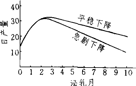 释义 | 泌乳曲线lactation curve反映乳用牲畜泌乳期内泌乳量逐月或逐日变化的曲线。以横坐标表示时间,纵坐标表示泌乳量绘出的泌乳曲线,反映了牲畜泌乳的性能和泌乳量变化的规律。乳牛的泌乳曲线一般有平稳下降曲线、波动曲线、急剧下降曲线3种类型,以平稳下降类型为佳。通过对泌乳曲线的分析,研究牲畜泌乳量变化的原因,可以为制定产乳量计划和进一步改善饲养管理提供科学依据。亦是选种、育种的重要参考指标。 泌乳曲线 泌乳曲线以各泌乳月为横座标,各泌乳月产量为纵座标而绘制成的曲线图。反映奶畜泌乳产量升降情况的一种统计图形,用以评定奶畜泌乳期产乳的平稳程度和为科学饲养提供根据。 |