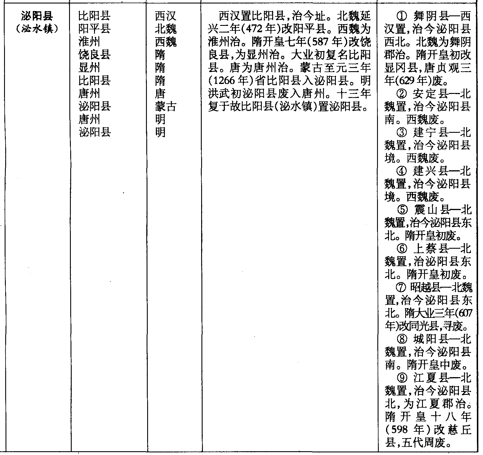 ❷ 安定县—北魏置,治今泌阳县南。西魏废。