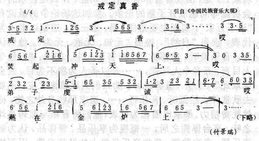 释义 | 法乐 法乐见“昙摩流支”。 ☚ 昙摩流支 佛陀耶舍 ☛ 法乐 法乐见“昙摩流支”。 ☚ 昙摩流支 佛陀耶舍 ☛ 法乐 008 法乐佛教法事中唱奏的音乐。其名始见于东晋《法显传》。佛教本出印度,约在东汉明帝年间(58—75)传入中国。佛教音乐随之而来,初为一种吟诵性歌调,称为“赞呗”。但汉语、梵音两不相合,“音韵不可互用”,“至魏时,陈思王曹植……遂制转赞七声,升降曲折之响,世之讽诵,咸宪章焉。”(唐《法苑珠林》)从此,赞呗渐与中国语言音韵结合,并衍为“转读”与“梵呗”两种形式。转读近于诵,字句无定,用以咏读佛经;梵呗近于歌,或称“颂赞”、“偈赞”,有四、五、七言多种,一般皆作四句,用以赞颂佛祖菩萨。齐、梁时,佛教兴盛。梁武帝肖衍,笃信佛法,曾在裁定雅乐时,“亲制《善哉》、《大乐》、《大欢》、《天道》、《仙道》……等十篇,名为正乐,皆述佛法。” “又设法乐童子伎,童子倚歌梵呗”,每遇“无遮大会则为之。”(《隋书·音乐志》)如是法乐大振,逐渐发展成为清商乐中“倚歌”的这种形式。隋唐以来,又为宫廷燕乐所吸收,形成大曲中风格清雅的“法曲”。唐玄宗所作《霓裳羽衣曲》,即为著名法曲之一。 戒 定 真 香