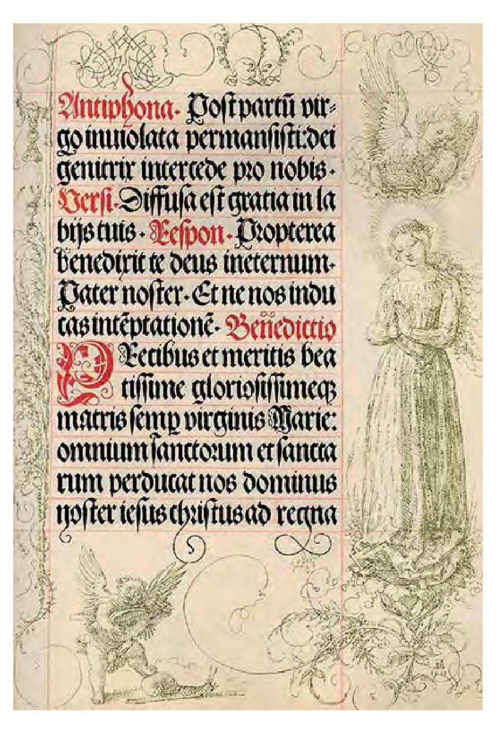 释义 | 法克图体法克图体(Fraktur)是16世纪中期到20世纪初期在德语地区使用最多的印刷字体。从更广泛的意义上来说,法克图体这一总称还包括了其他一些同族字体,如纺织体和施瓦巴赫体。从字体特征上来看,法克图体比粗犷的施瓦巴赫体更纤细。这种字体的大写字母拥有弧形的弯道。 法克图体的“A”和“a” 法克图体的发展和传播速度非常迅猛。它自从16世纪初完成设计并迅速完善后,到16世纪末短短的几十年间几乎取代了其他所有用于印刷的德语字体。 国王马克西米利安祈祷书中的法克图体(公元1512年) |
