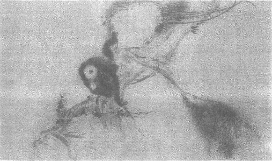释义 | 法常《松猿图》 法常《松猿图》绢本,淡设色。纵173.9厘米,横98.8厘米。现藏日本京都大德寺。画面描绘一老松枝干上一只长臂猿保护小猿的情景。母猿好像发现了敌情,把小猿紧紧地抱在怀里,挤作一团的小眼睛死死地盯住前方,那紧张而严肃的表情,使观众感到很有趣。画面是否有特殊含义,不得而知。不过与法常同时的南宋禅僧智愚留有题法常松猿图诗 “霜堕群林空,一啸千岩静。耿耿殊有情,劳生发深省。抱子攀危枝,清兴在高远。一点钟爱心,业风吹亦断。”智愚用禅宗的观念衡量大千世界,把 一切看得都如过眼云烟,猿所表现出来的一点钟爱心,也很容易被“业风”吹断,所谓业风是指尘世的纷烦。老松缠绕枯藤,画得很随意,长臂猿的五官被画得挤成一团,增加一种紧张气氛,猿越紧张,越觉得可笑。暗寓某种禅理。 法常《松猿图》 法常(?—1180),自号牧溪,四川人,俗姓李。出家后住天台山万年寺,为无准禅师弟子。南宋末因不满贾似道投敌卖国而遭通缉,不得不逃亡躲避。善画龙虎、猿鹤、芦雁,山水、人物皆随笔点墨而成,意思简当。大部分作品已流入日本,对日本绘画影响很大。 ☚ 夏圭 《溪山清远图》 钱选《蹴鞠图》 ☛ |