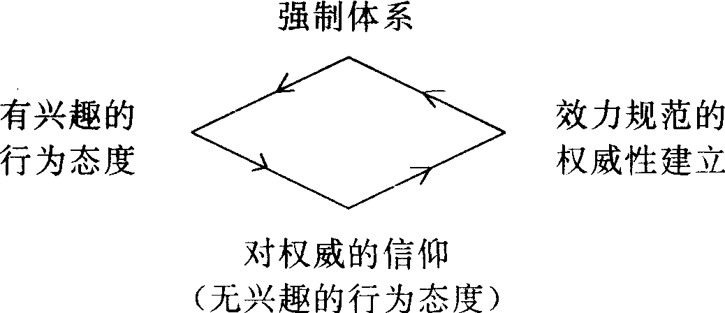 法律的理想类型系统丹麦的斯堪的纳维亚实在主义法学家A.罗斯(Ross)解释法律的一种模式。他区分决定法律现象的4个相关因素:(1)现实的强制体系;(2)有兴趣的行为态度,即对强制行为的恐惧;(3)无兴趣的行为态度,即社会习俗暗示的特殊法律性质的效力观念;(4)规范的权威性的建立,它决定于产生功能的效力观念的力量。4种因素关系可用图式表达为:  具体可表达为:建立在纯粹强制体系之上的一个社会,避免强制的有兴趣的行为态度越巩固,法律强制实施的机会就相对越少。由于这种社会的暗示力,社会会同时产生一种无兴趣的行为冲动,逐渐地具有一种效力的特征。也就是说,强制性命令本身将逐渐滋生自己的效力,并使之合法化。在这种情况下,法律关系的主体就产生法律规范应该遵守的意识,即无兴趣的行为态度,另一方面,在一个纯粹建立在规范效力之上的权威性体系中,不遵守规范的情况较少发生,因为这里有一种强制的威胁。这样,权威性体系本身就逐渐地具有真实的或强制命令的特征。而这又导致有兴趣的行为态度。法律依赖于权威性或制度性体系,由此产生法律规则并以强制力予以维持。这种理想类型系统有时被扩展为“ ”形式,这便意味着诸如“公平”、“原则”或“习惯法”等对权威的信仰,通过法院的实践,无须正式规范的媒介,直接成为合法化强制体系的基础。这种合法化建立在产生有兴趣行为态度的能力之上。法律规则的权威性经由“能力”决定个人的心理——物理行为。法律规范成为决定法律现象的因素,它的充当法律现象的综合性因素,部分反映和部分产生真实的行为态度。罗斯这一学说,是以心理学行为主义为指导的。 |