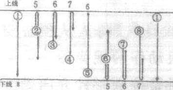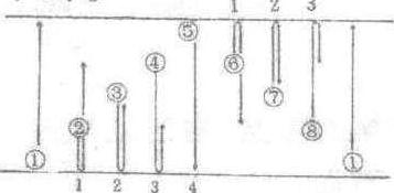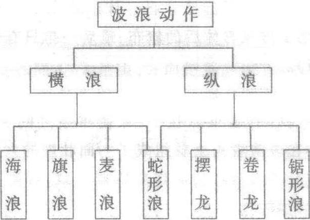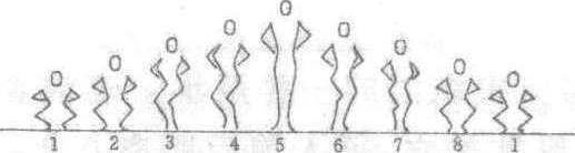 释义 | 波浪动作 波浪动作是指每个人由不同的开始姿势,按规定的方向和节拍,有规律的反复做固定的匀速的身体起伏动作(也可以同时做两臂绕环动作)。它能使表演场面呈现一种波浪起伏、波涛翻滚、气势磅礴的状态。波浪动作既能表现进取、向上、拼搏的主题,又能较好地烘托表演气氛,是团体操中经常采用的表现手法之一,深受广大观众欢迎。 不同的波浪动作表演者之间的距离也不相同,例如:做横浪时两臂侧举并与左右人搭肩和两臂在头上屈臂交叉并与左右人拉手的波浪动作,虽同属横浪但他们的距离就不相同,前者为60厘米,后者为40厘米。又如旗浪和麦浪由于道具不相同,他们的距离也不相同,旗浪的间隔距离是1.20米, 麦浪每人左右间隔60厘米,前后距离1.20米,也可以2.40米。为取得较好的表演效果,纵浪每人前后距离和横浪每人左右间隔一般是40~80厘米为宜。 波浪动作的种类虽然较多,但动作的做法都有共同的规律(以8人一组浪峰为例)。 预备姿势:1号:全蹲。2号:稍高于1号。3号:半蹲。4号:稍高于3号。5号:直立。6号:同4号。7号:同3号。8号:同2号(图1)。 图1 动作:1~4拍:每人从预备姿势开始,1号:向上成直立。2~4号:先向下经全蹲后再向上。5号:向下成全蹲。6~8号:先向上经直立后再向下蹲。 图2 5~8拍:1号:向下成全蹲。2~4号:先向上经直立后再向下蹲。5号:向上成直立。6~8号:先向下经全蹲后再向上。每人都还原成预备姿势。反复做匀速蹲起动作即形成波浪状态(图2、图3圆圈中的数字表示人数,上线的数字表示每人成直立时的节拍,下线的数字表示每人成全蹲时的节拍。 图3 波浪动作训练的程序:1.定人定位,每人明确直立和全蹲时的节拍,分号进行训练。要特别注意蹲起动作的匀速性。2.以一个浪峰为单位训练。3.全场整体配合训练,注意各浪峰之间衔接处的配 合。 ☚ 模仿动作 海浪 ☛ 波浪动作 波浪动作身体某部分邻近的关节按顺序做柔和屈伸的动作。在艺术体操、舞蹈、团体操中广泛采用。如:臂波浪;身体前波浪;集体波浪等等。 ☚ 卧 徒手体操动作方向 ☛ 波浪动作 波浪动作是艺术体操的典型动作之一。是身体某部位各关节做依次、连贯的屈伸动作。它体现了各关节肌肉群紧张与放松协调而灵活的交替运动。波浪动作可以有效地发展人体柔韧及协调性。这包括手臂波浪、躯干波浪和全身波浪;从方向上分有向前、向后、向侧波浪,上下波浪,内外波浪等。