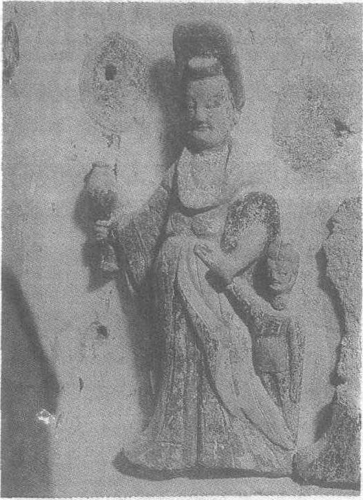 释义 | 泥塑母与子供养像 泥塑母与子供养像北魏。母高24.3厘米,子高13厘米。甘肃省天水市麦积山石窟第142窟正壁塑像。此供养像为工匠受供养人委托而塑造的。一贵妇头戴高冠,身穿圆领长袍,面庞丰腴,肌肤滋润,形体富态,俨然一位养尊处优的贵族妇人。左手牵一稚儿,孩身体瘦小,穿一兜肚,脸上充满好奇和兴奋,紧倚在母亲身侧。塑像寓意虔诚信佛的母亲携子还愿和祈福,手法古拙而简练,行进中的动感巧妙地用扬起的裙衫表示。人物神态的塑造极为生活化,使人感到熟悉而亲切。 ☚ 泥塑阿难像 泥塑弟子迦叶像 ☛ |